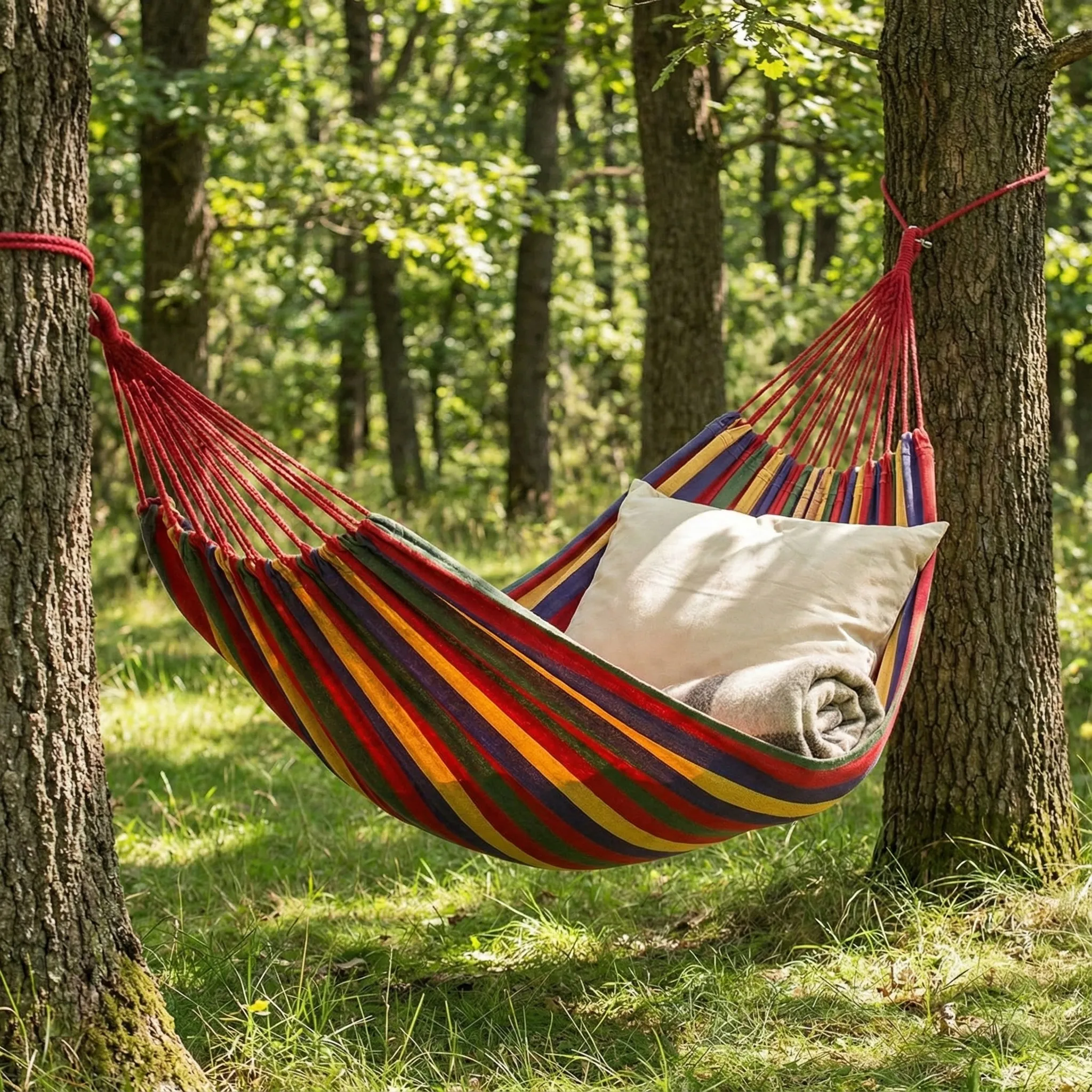 Descoperă confortul unui Hamac Dublu cu Bare de Susținere!