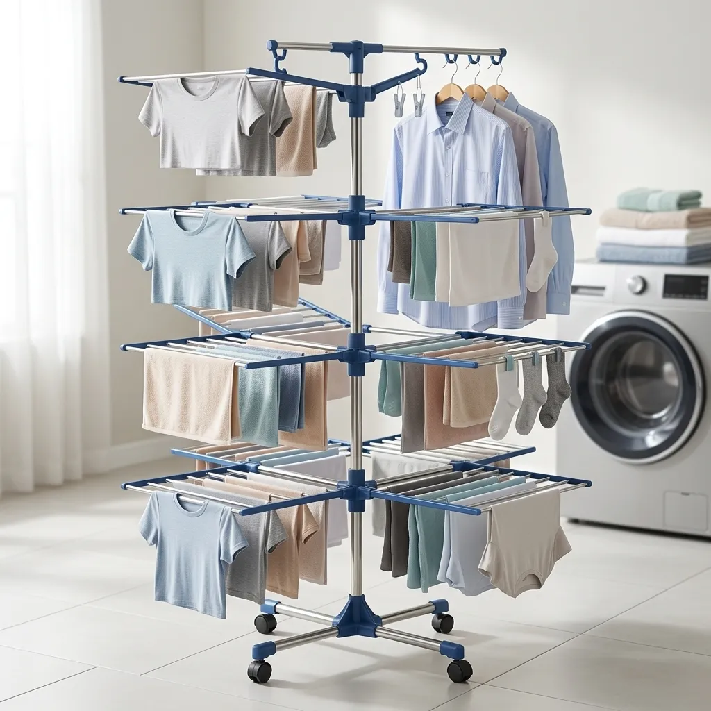 Economisește spațiu și transformă uscarea rufelor într-o activitate simplă și organizată cu uscătorul vertical pliabil – soluția perfectă pentru un stil de viață modern în spații restrânse!