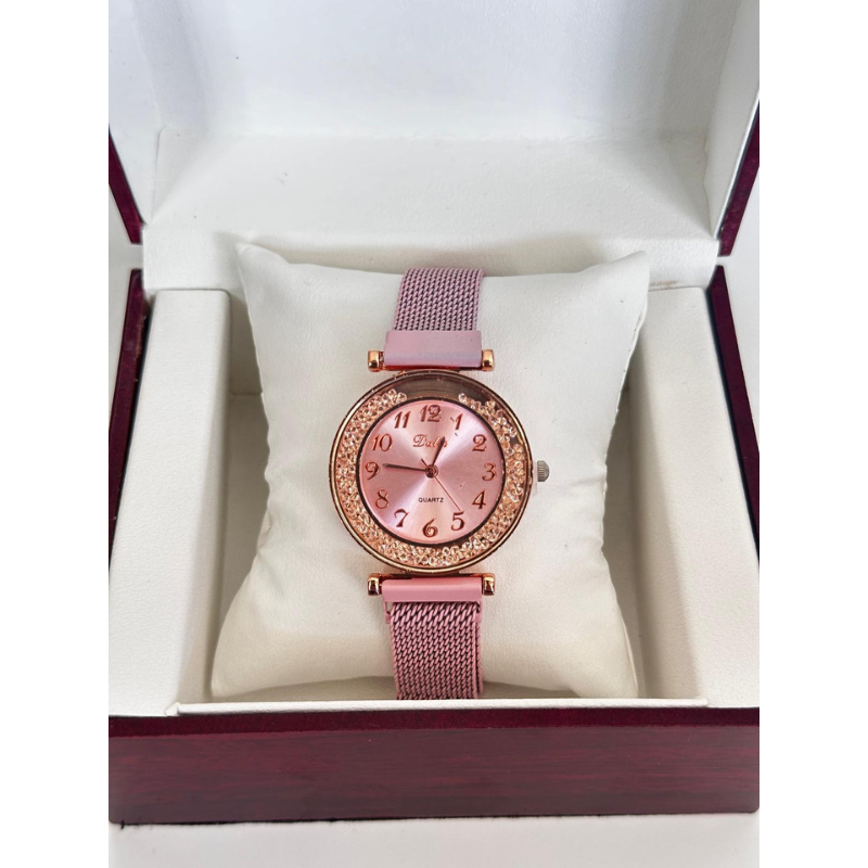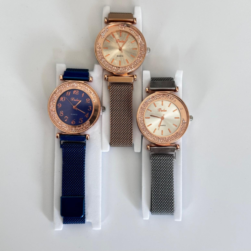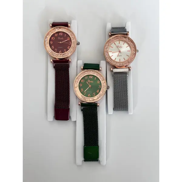 Analizând pozele, ceasul se remarcă printr-un design minimalist și contemporan. Cadranul analogic, adesea decorat cu efect de sclipici (glitter) sau degrade, oferă o strălucire aparte sub acțiunea luminii. Mecanismul Quartz asigură o precizie ridicată, în timp ce magnetul puternic de la capătul brățării garantează o fixare sigură pe tot parcursul zilei. Este un accesoriu elegant, ideal pentru femeia modernă care pune preț pe rapiditate și stil.