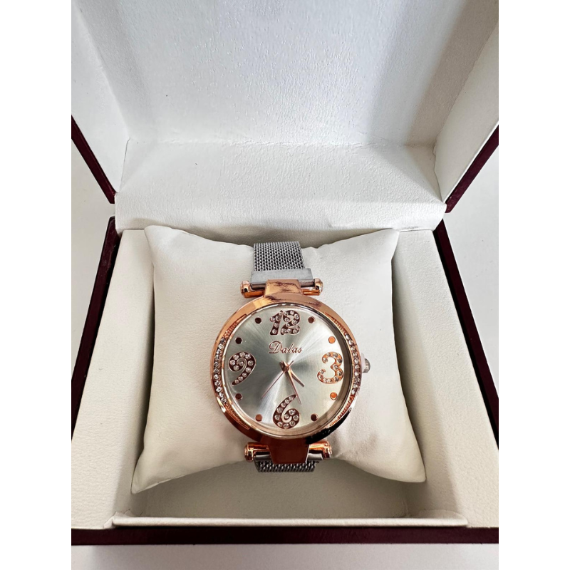 Analizând imaginile, se observă cadranul elegant, care adesea prezintă reflexii deosebite sau detalii minimaliste, protejat de o sticlă minerală rezistentă. Carcasa metalică este finisată impecabil, asortându-se perfect cu brățara mesh. Datorită magnetului puternic, ceasul rămâne fixat în poziția dorită pe tot parcursul zilei, fiind accesoriul ideal pentru femeia modernă care dorește să combine eleganța clasică cu o funcționalitate practică de ultimă oră.