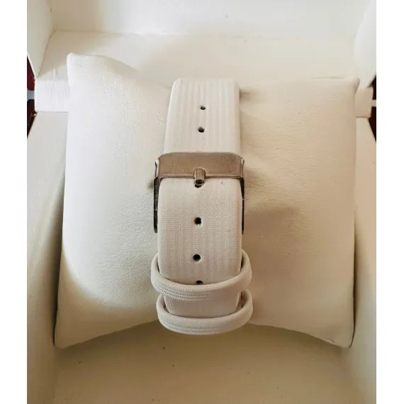 Cureaua din piele, disponibilă în culori asortate cadranului, este realizată din material flexibil și confortabil, plăcut la purtare pe tot parcursul zilei. Textura fină și aspectul mat completează armonios carcasa metalică lucioasă. Sistemul de închidere este clasic, cu cataramă metalică rezistentă, oferind siguranță și durabilitate în utilizare zilnică.