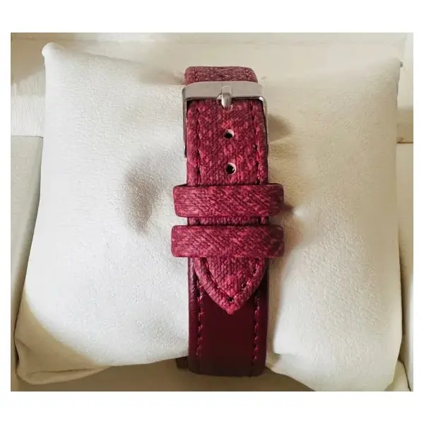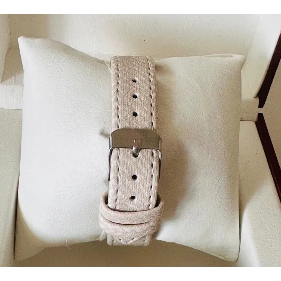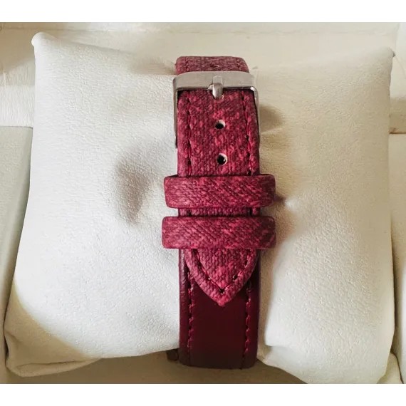 Cureaua din piele, disponibilă în diverse culori asortate cadranului, este realizată din material flexibil și plăcut la atingere. Aceasta se așază confortabil pe mână și este prevăzută cu sistem de închidere clasic, cu cataramă metalică, pentru siguranță și durabilitate la purtare zilnică. Textura ușor mată a curelei completează armonios luciul carcasei și al cristalelor.