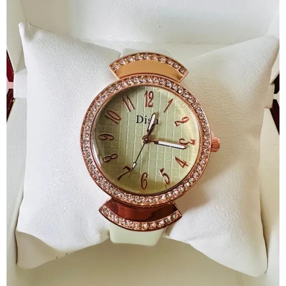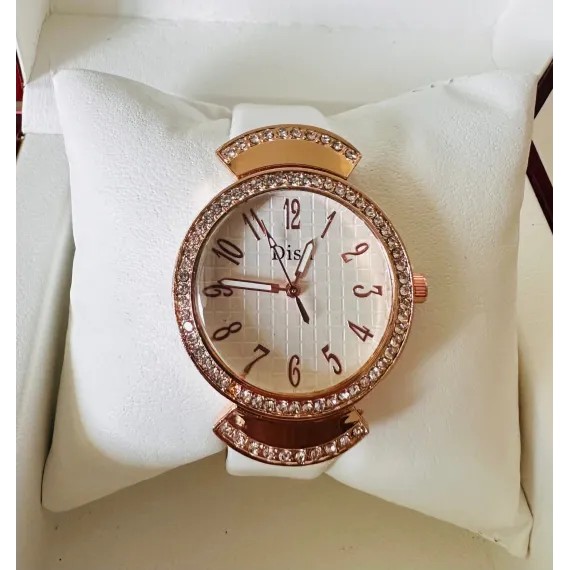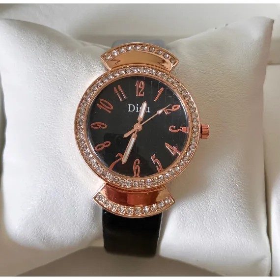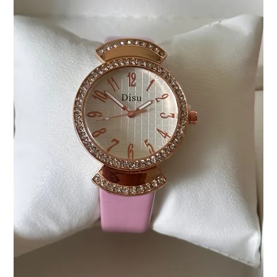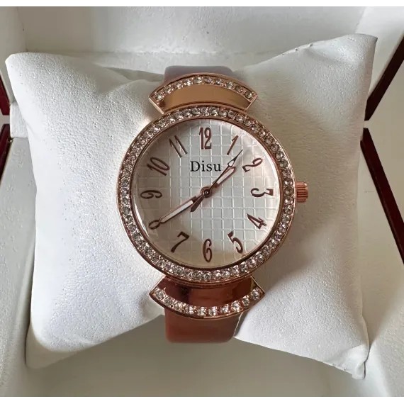 Ceasul de damă cu curea din piele, disponibil în diverse culori, este un produs elegant, conceput pentru comercializare en-gros, ideal pentru magazine de bijuterii, accesorii fashion, buticuri sau revânzători online. Modelul se remarcă printr-un design feminin rafinat, cu carcasă decorată cu cristale strălucitoare și un cadran bine proporționat, ușor de citit, care oferă un aspect premium la un preț competitiv.