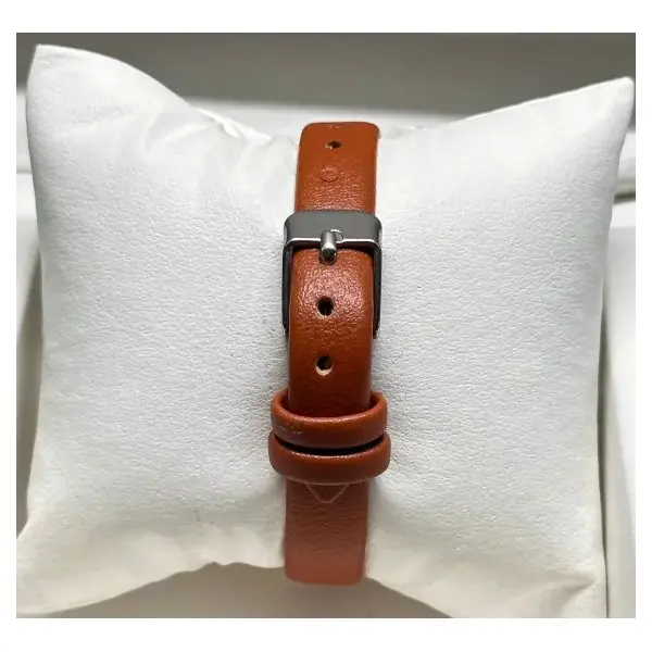 Cureaua din piele este disponibilă în mai multe culori atractive, precum gri, roz, maro, portocaliu, roșu, verde, negru sau verde deschis. Materialul este flexibil, confortabil și plăcut la atingere, adaptându-se ușor pe încheietura mâinii. Sistemul de închidere este clasic, cu cataramă metalică, oferind siguranță și durabilitate la utilizare zilnică. Varietatea cromatică permite comercianților să ofere mai multe opțiuni fără a diversifica excesiv gama de produse.