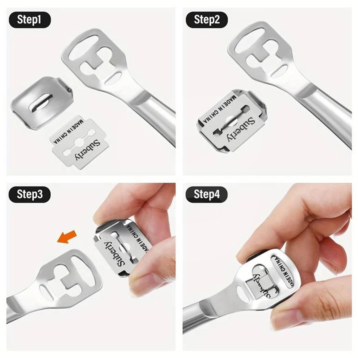 Setul include o lamă de rezervă, ceea ce permite utilizări multiple și menținerea unui nivel ridicat de igienă. Ideal pentru persoanele cu piele îngroșată pe călcâie, bătături sau calusuri, oferind o exfoliere eficientă, cu rezultate vizibile încă de la prima utilizare.