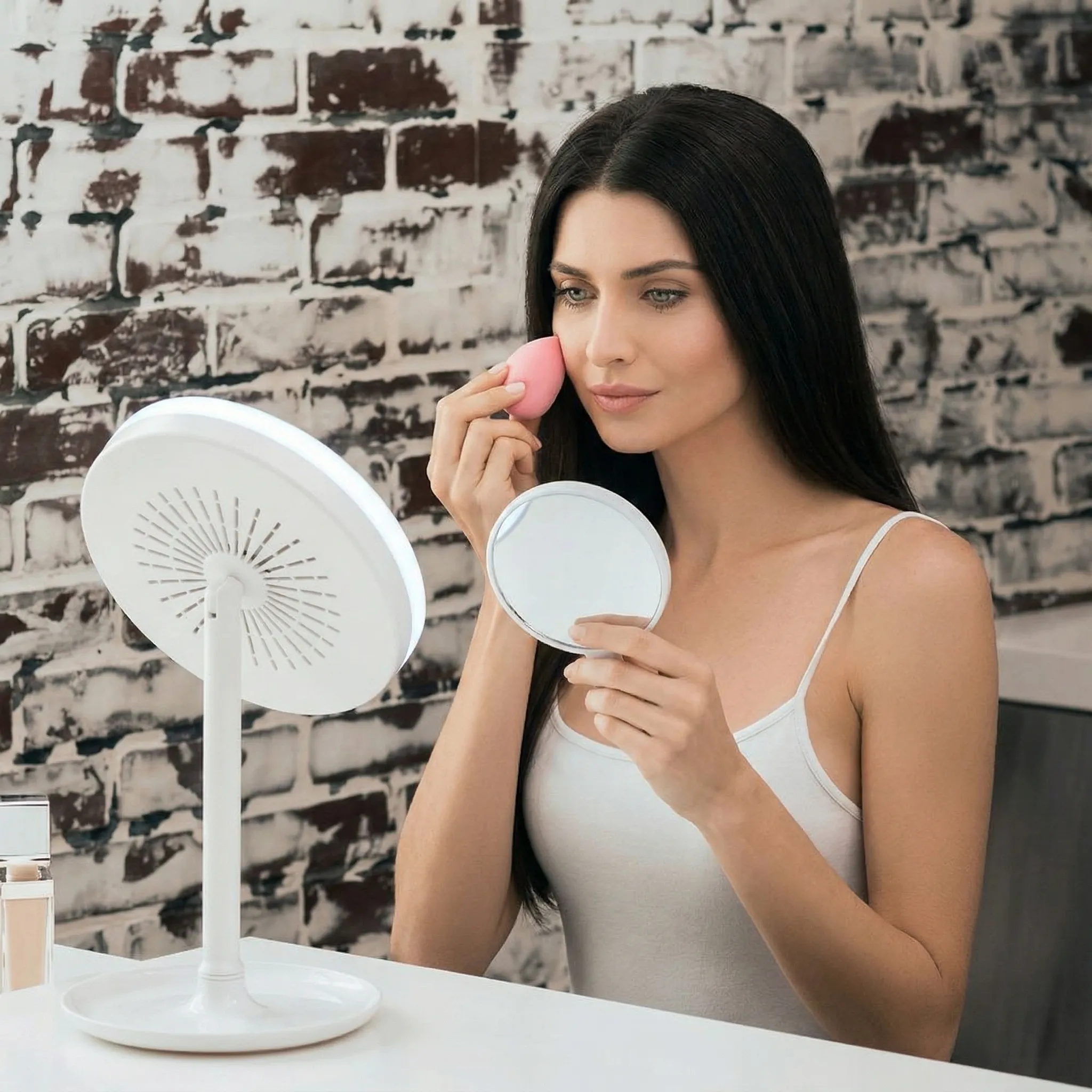 - Ventilator Integrat pentru Confort: Uită de disconfortul căldurii în timpul sesiunilor lungi de machiaj. Ventilatorul încorporat oferă o briză delicată care ajută la fixarea machiajului și îți oferă o senzație de prospețime pe tot parcursul rutinei.