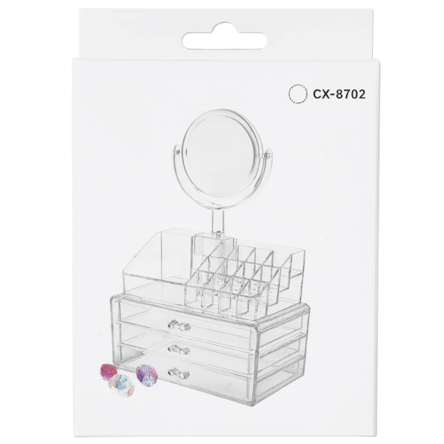 Organizatorul din acril pentru cosmetice și bijuterii cu oglindă rotativă este conceput pentru organizarea eficientă a produselor de machiaj, accesoriilor cosmetice și bijuteriilor, fiind potrivit atât pentru uz personal, cât și pentru utilizare profesională sau comercializare en-gros. Realizat din acril transparent, rezistent și non-toxic, produsul oferă o vizibilitate completă asupra conținutului și permite acces rapid la toate articolele depozitate.