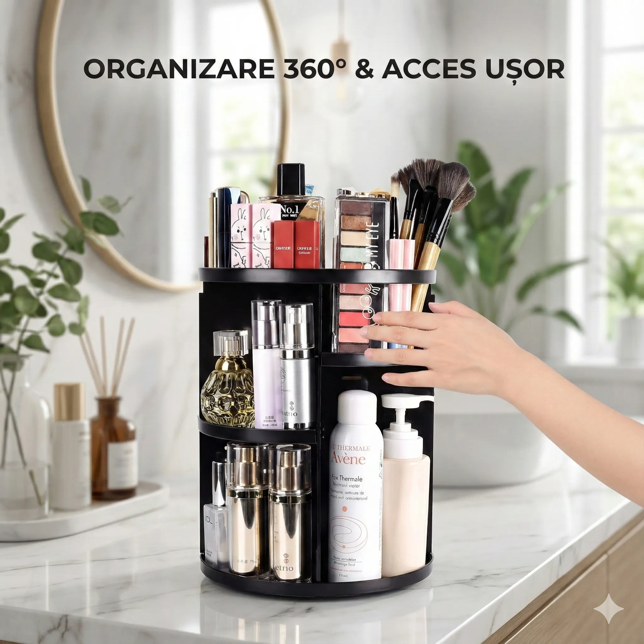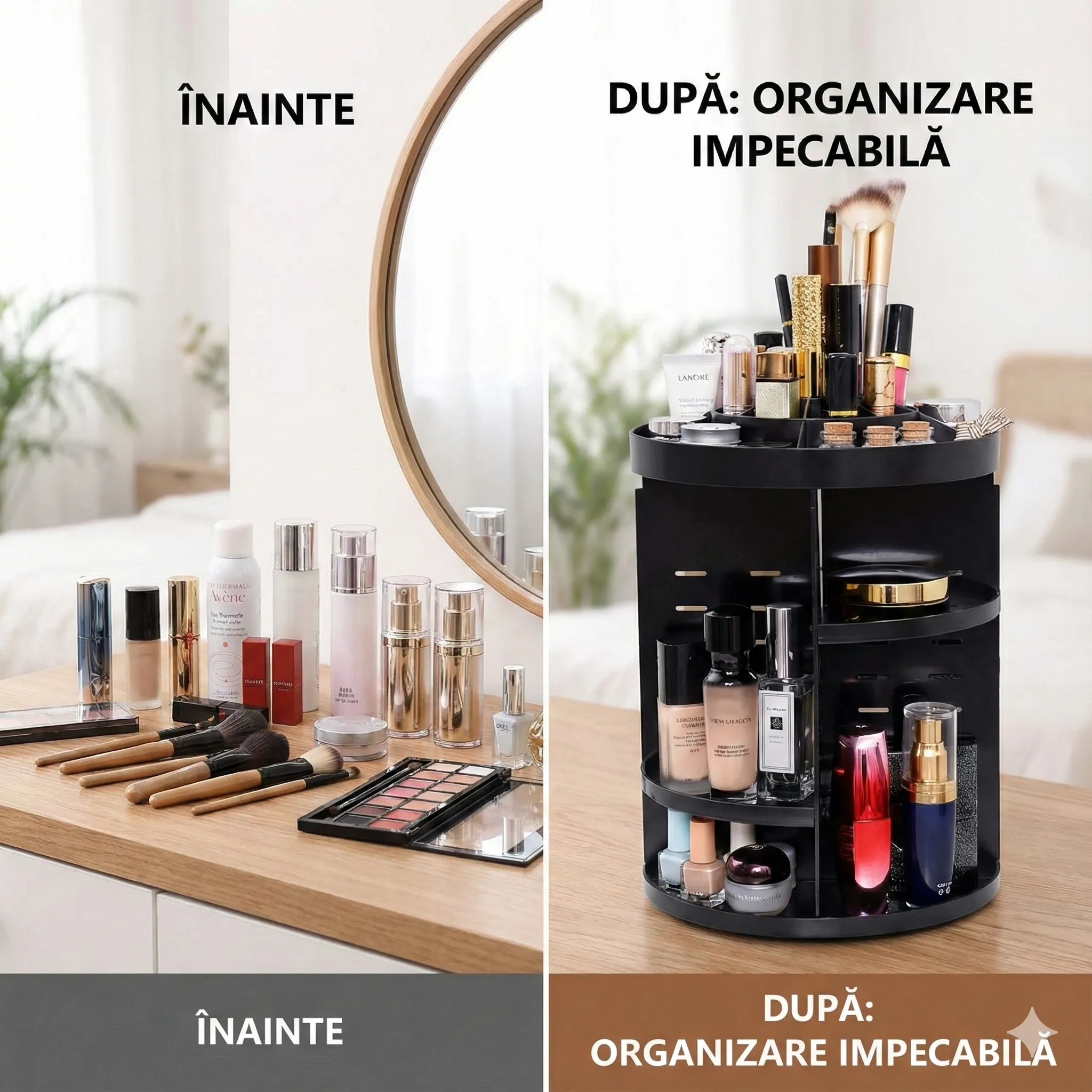 Redescoperă bucuria de a te aranja într-un spațiu impecabil! Comandă acum Organizatorul Cosmetic Rotativ 360° și oferă-i colecției tale locul pe care îl merită!