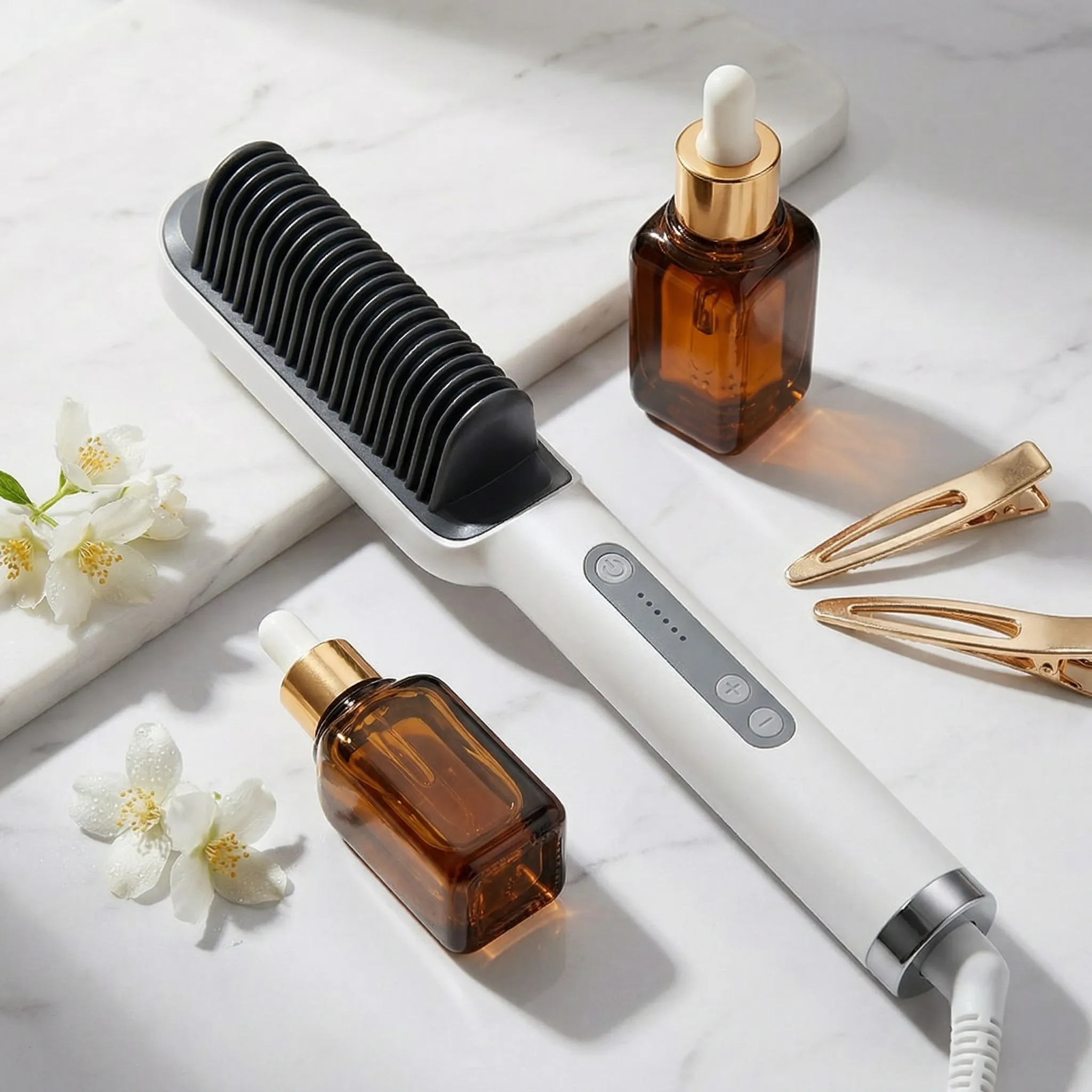 Obține un look impecabil, cu un păr perfect neted și plin de strălucire, folosind noua Perie Electrică UBX pentru Îndreptat Părul. Proiectată special pentru a îmbina eficiența unei plăci de îndreptat cu ușurința utilizării unei perii obișnuite, acest dispozitiv este partenerul tău ideal pentru un styling rapid și sigur, chiar la tine acasă.