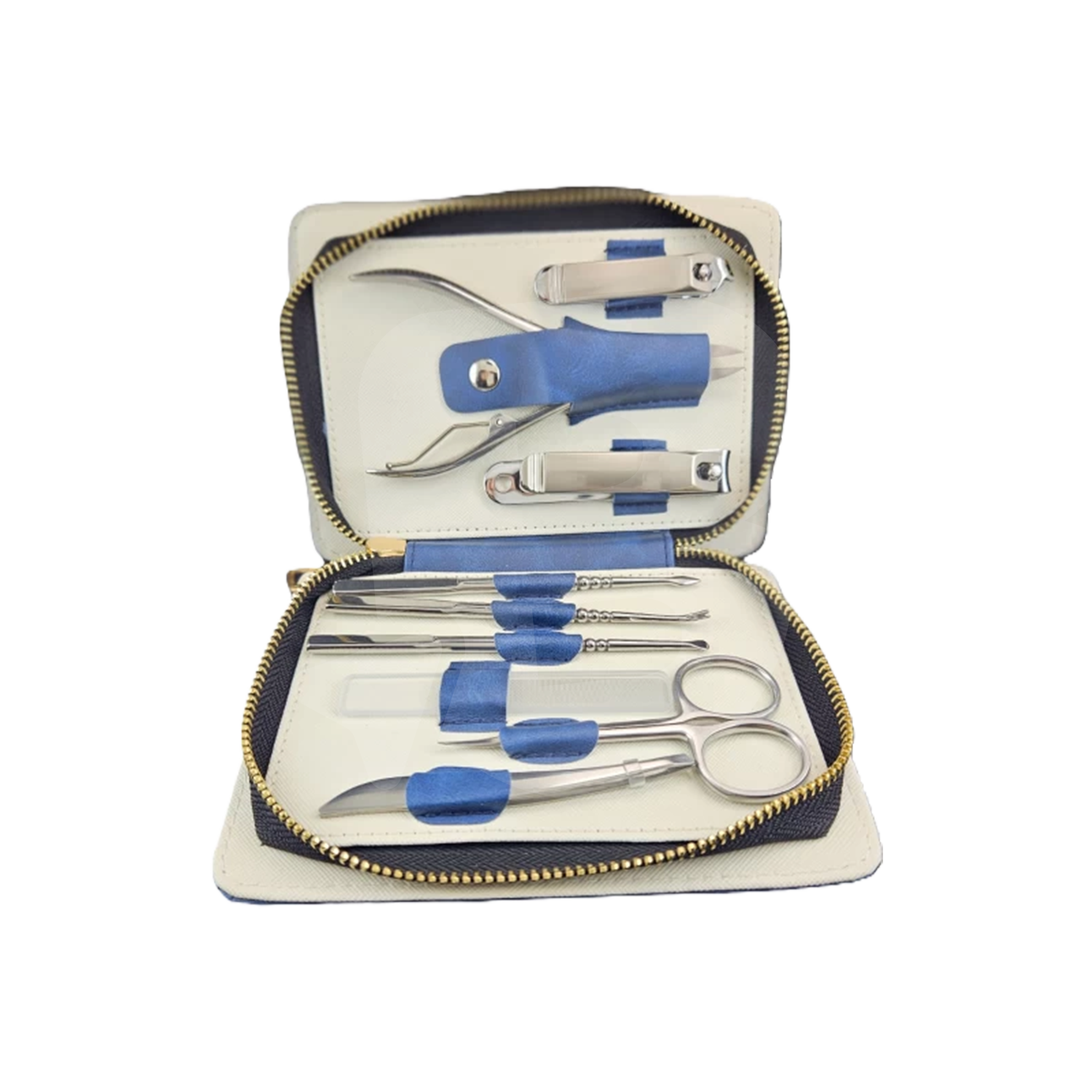 Trusa profesională de manichiură cu 9 piese din oțel inoxidabil, prezentată într-un etui crem elegant cu fermoar auriu, este o soluție completă și premium pentru îngrijirea unghiilor acasă, în salon sau în timpul călătoriilor. Modelul se remarcă prin organizarea impecabilă, calitatea instrumentelor și protecțiile albastre din interior, care asigură stabilitate și protecție suplimentară.