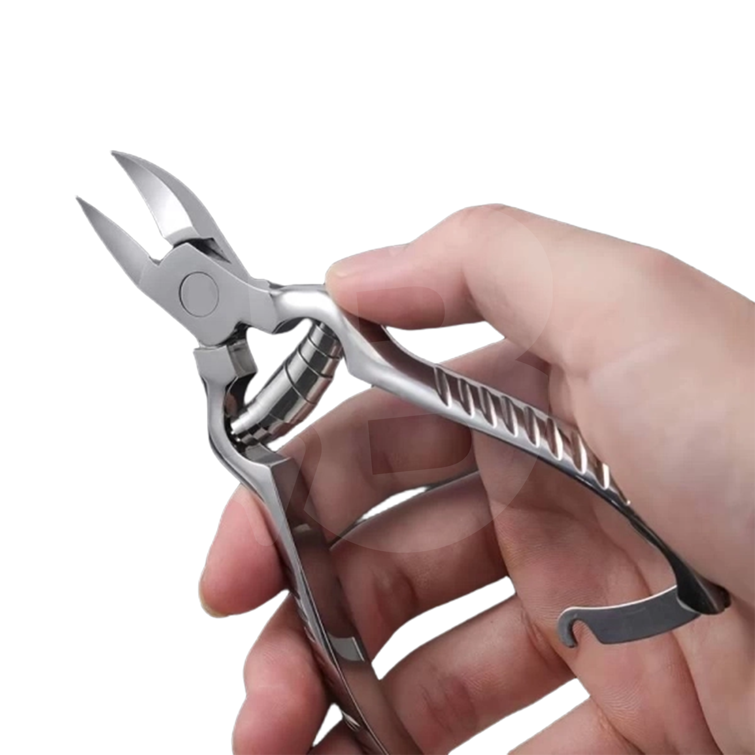 Designul robust, asociat cu lama curbată, permite adaptarea perfectă la forma naturală a unghiei, făcând posibilă o tăiere lină și uniformă chiar și pe unghiile foarte dure. Lama curbată ajută la prevenirea ruperii sau ciobirii unghiei, reducând în același timp riscul apariției durerilor cauzate de tăieri incorecte. Cleștele este potrivit și pentru persoanele cu unghii îngroșate din cauza factorilor precum încălțămintea strâmtă, deformările unghiale, boli fungice sau vârsta.