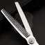 Lama zimțată, cu dinți uniform distribuiți, este proiectată pentru o filare graduală, controlată și eficientă, evitând tăieturile bruște sau îndepărtarea excesivă a volumului. Oferă un nivel ridicat de precizie în subțierea șuvițelor, reducerea volumului și obținerea unor tranziții line între straturi. Tehnicienii pot lucra cu ușurință atât pe păr gros, cât și pe păr fin, fără a provoca deteriorări sau ruperea firului.
