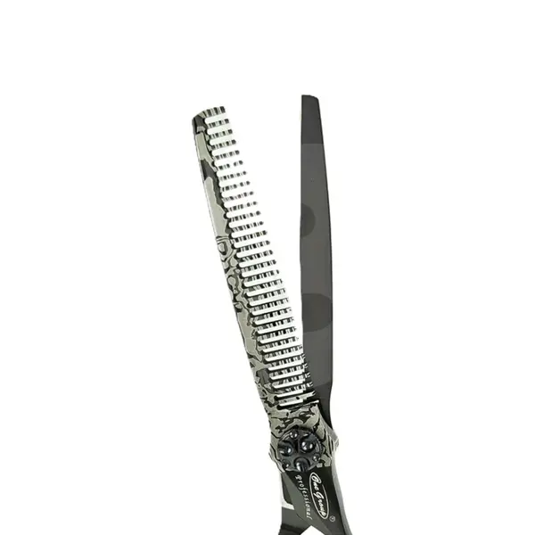 Foarfeca de filat neagră cu design dragon este un instrument profesional creat special pentru stiliști, frizeri și utilizatori casnici care își doresc o texturare uniformă, precisă și eficientă a părului. Realizată din oțel inoxidabil de înaltă calitate, această foarfecă impresionează atât prin performanțele sale excelente, cât și prin estetica aparte – un design dragon gravat, care oferă un aspect puternic, rafinat și profesional.
