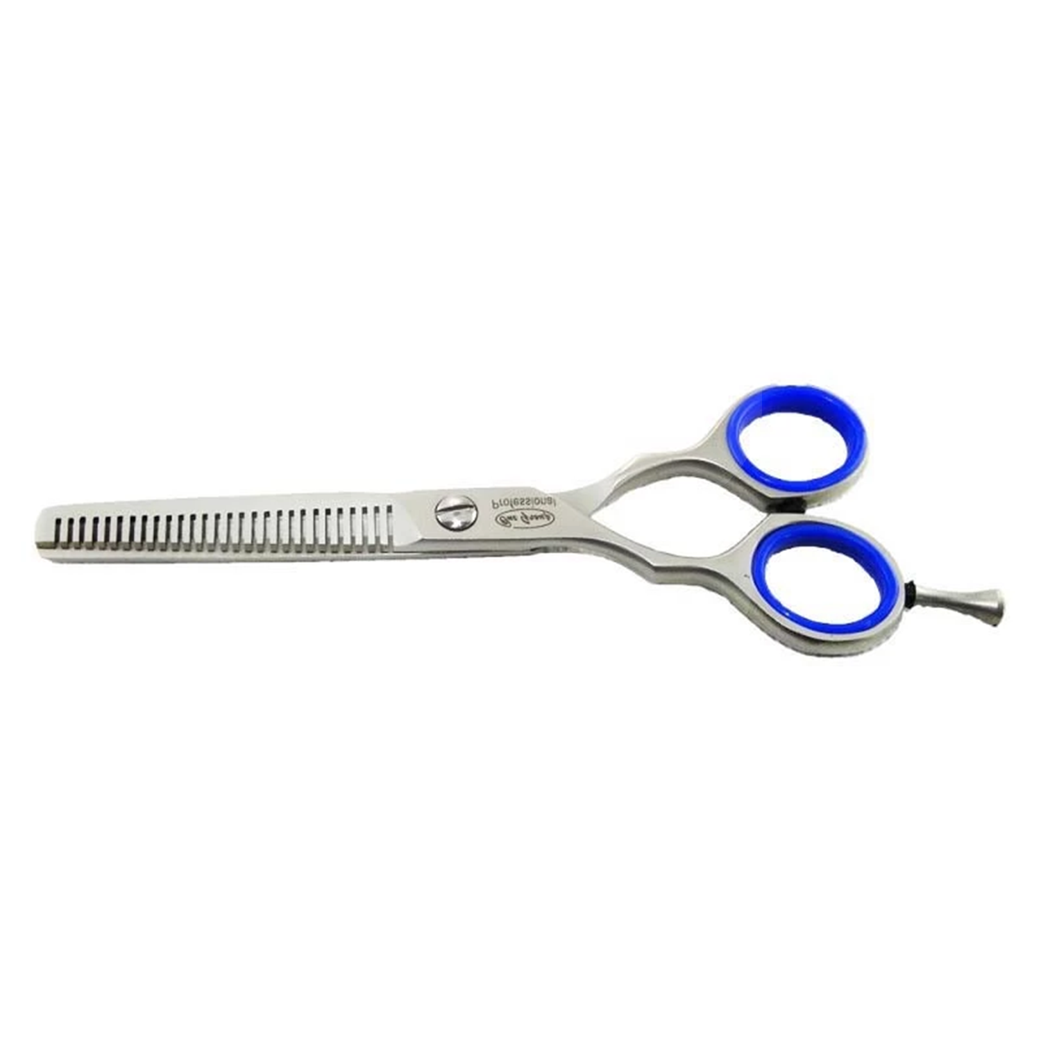 Foarfeca profesională de filat cu inele albastre cauciucate este un instrument esențial pentru saloanele de coafură, barbershop-uri și profesioniștii care lucrează zilnic cu tehnici de subțiere, texturare și estompare a liniilor dure din tunsori. Realizată din oțel inoxidabil de calitate superioară, această foarfecă oferă o durabilitate excelentă, rezistență ridicată la uzură și o tăiere uniformă, ideală pentru utilizarea intensivă în medii profesionale.