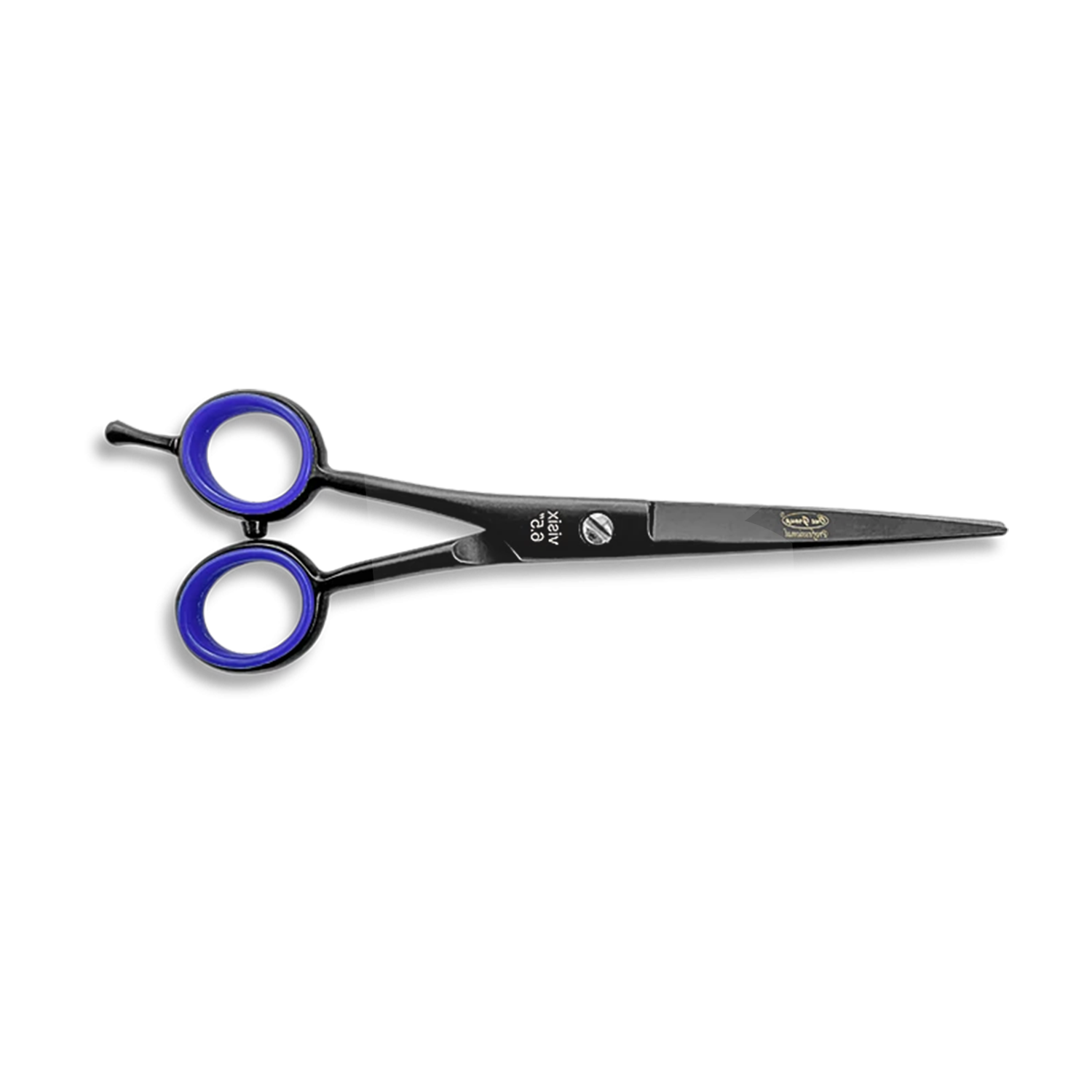 Foarfeca de tuns neagră 6.5" este un instrument profesional conceput pentru frizeri, stiliști și saloane care au nevoie de performanță, durabilitate și un design modern. Modelul prezentat în imagine se remarcă prin finisajul complet negru, elegant și rezistent, precum și prin inserțiile albastre din inele, care nu doar oferă un plus de confort, ci și un aspect distinctiv, apreciat în industria hairstyling.