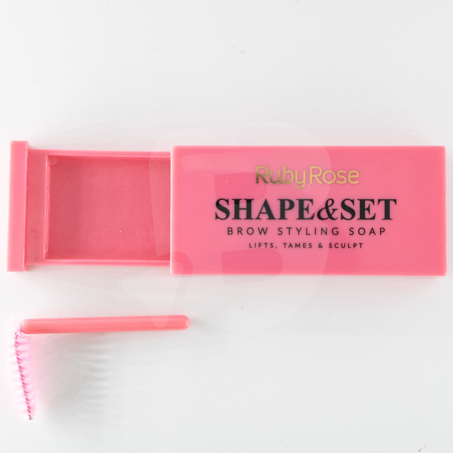 Cutia compactă de tip „soap brow” conține o pastă specială cu textură solidă, activată prin periuța inclusă în set. Periuța moale, de culoare roz, este ideală pentru distribuirea uniformă a produsului și modelarea firelor în direcția dorită. Formula se fixează rapid, oferind un efect de lungă durată fără să lase reziduuri, pete albe sau senzație lipicioasă.