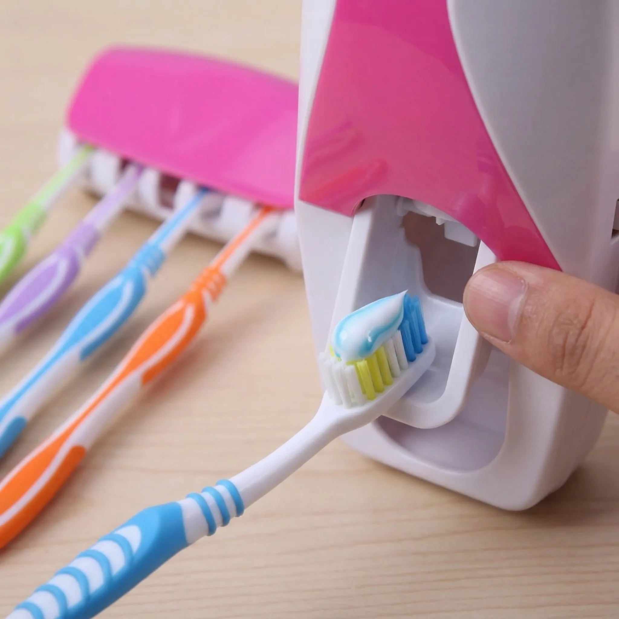 Menținerea igienei orale este esențială, dar modul în care depozităm periuțele și dozăm pasta de dinți contează la fel de mult. Dozatorul de Pastă de Dinți cu Suport pentru 5 Periuțe a fost conceput pentru a aduce un plus de eficiență și curățenie în casa ta, transformând spălatul pe dinți într-o activitate simplă și ordonată.
