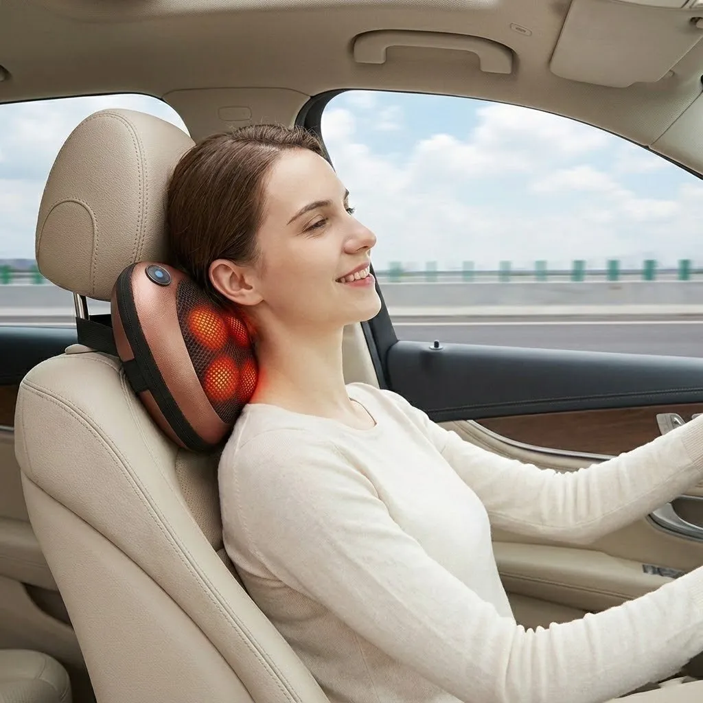 Sfat de utilizare: Pentru rezultate optime în relaxarea cervicală, poziționați perna astfel încât capetele rotative să acționeze direct asupra bazei craniului și a mușchilor trapez.
