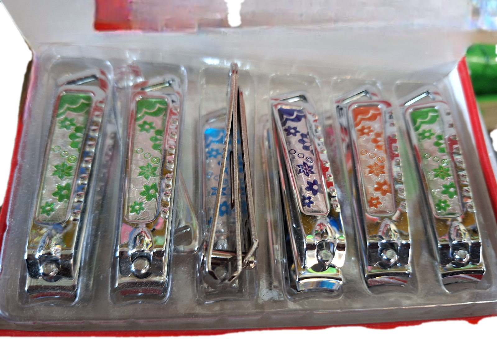 Fiecare unghieră din acest set beneficiază de tehnologia Sharp and Durable, garantând lame extrem de ascuțite care asigură o tăiere precisă și netedă, fără a deteriora structura unghiei. Designul ergonomic (Feel comfortable) și marginea curbată (Curved edge) permit o manevrare ușoară și sigură, adaptându-se perfect formei naturale a unghiilor. Elementul distinctiv al acestui set este imprimeul floral multicolor – cu trandafiri și flori de câmp în nuanțe de roz, albastru și galben – care transformă aceste unghiere în accesorii feminine și stilate.