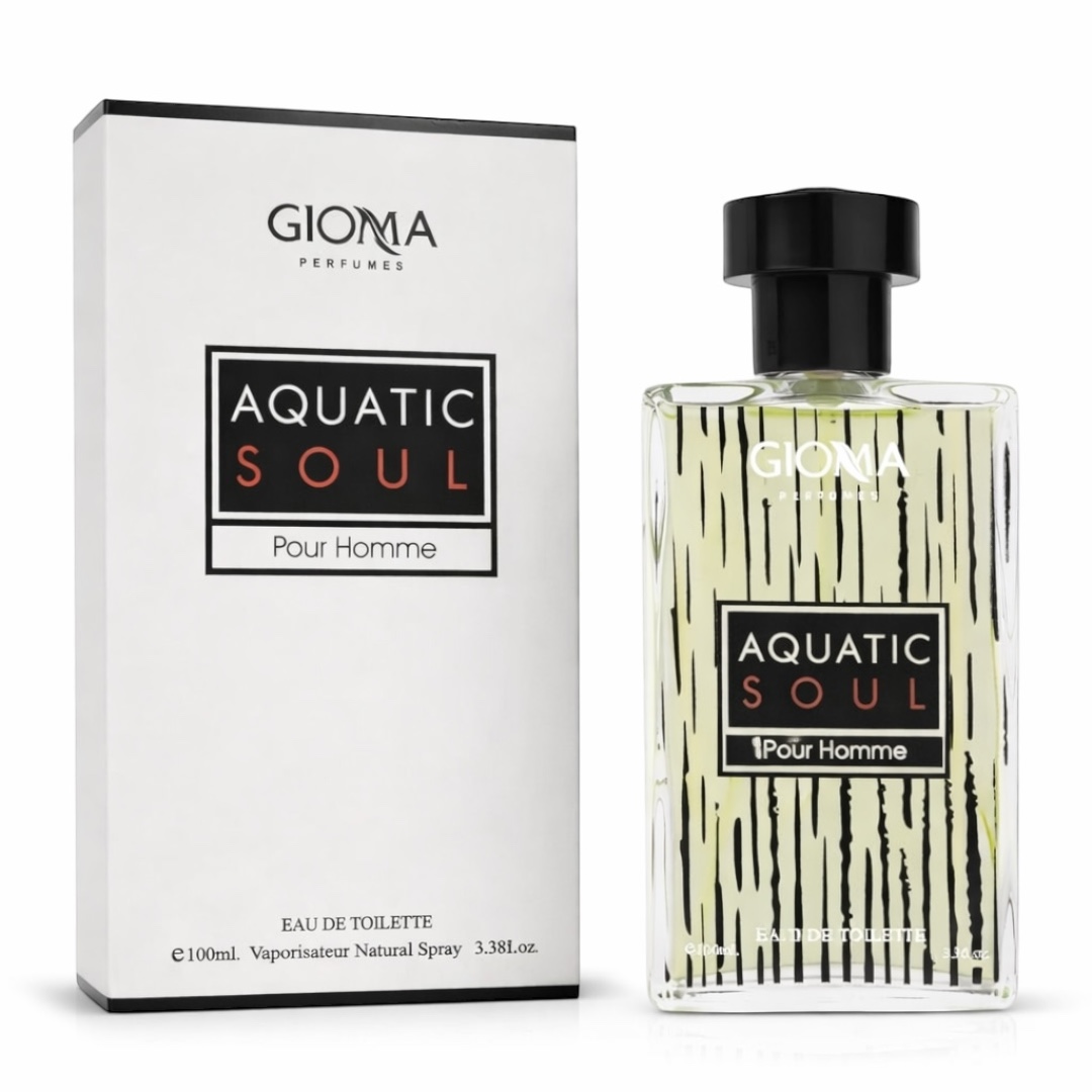 Privind detaliile vizuale, Aquatic Soul se remarcă printr-un design modern și grafic: flaconul din sticlă transparentă este decorat cu linii verticale negre, neregulate, ce sugerează texturi naturale sau mișcarea apei. Numele „AQUATIC SOUL” este încadrat într-un chenar negru elegant, cu accente de culoare ce subliniază caracterul dinamic al parfumului. Flaconul este dotat cu un capac negru, cilindric, ce oferă stabilitate vizuală și rafinament întregului pachet. Ambalajul exterior este o cutie albă curată, cu margini negre și elemente grafice identice cu cele de pe flacon, fiind o opțiune estetică excelentă pentru orice stoc angro de parfumuri de nișă. Volumul de 100 ml (e100ml) este ideal pentru o utilizare frecventă, oferind o experiență senzorială persistentă.