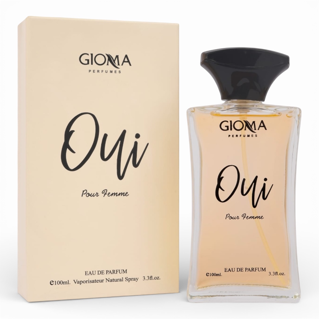 Analizând detaliile vizuale din imagini, Oui propune o estetică minimalistă de un lux discret: flaconul din sticlă transparentă pune în valoare lichidul de o nuanță piersică-aurie, ce sugerează o compoziție luminoasă și prețioasă. Designul este caracterizat de o eleganță simplă, având numele „Oui” înscris central cu un font cursiv, negru, de tip caligrafic, ce oferă o notă personală și chic. Flaconul este dotat cu un capac negru lucios, a cărui formă curbată și organică adaugă un plus de rafinament întregului ansamblu. Ambalajul exterior este o cutie într-o nuanță crem-bej delicată, oferind o prezentare vizuală curată și premium, ideală pentru orice stoc angro de prestigiu. Volumul de 100 ml (e100ml / 3.3 fl.oz.) asigură o prezență olfactivă memorabilă pe tot parcursul zilei.