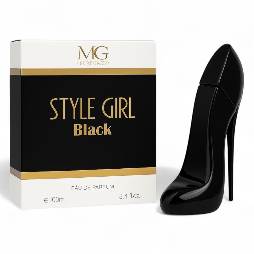 Analizând detaliile vizuale din imagini, Style Girl Black se remarcă prin cel mai iconic design din lumea parfumeriei: flaconul sub formă de pantof cu toc cui extrem de înalt, realizat dintr-o sticlă neagră lucioasă, opacă, ce emană un lux absolut. Această prezentare sculpturală nu este doar un parfum, ci un accesoriu de design care atrage instantaneu privirea. Ambalajul exterior este o cutie albă minimalistă, cu o bandă neagră centrală și accente aurii elegante, purtând semnătura brandului MG Perfumes. Compoziția olfactivă se deschide cu note dulci de migdale și cafea, evoluează spre o inimă florală de tuberoză și iasomie sambac, și se stabilizează pe o bază caldă de cacao și boabe de tonka. Volumul de 100 ml (e100ml / 3.4 fl.oz.) și estetica unică fac din Style Girl Black un best-seller garantat pentru distribuția angro.