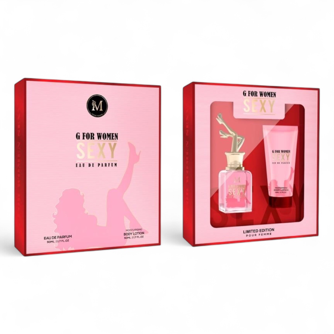 Pentru partenerii noștri care activează în segmentul vânzărilor engros, modelul G FOR WOMEN SEXY reprezintă o oportunitate comercială strategică. Profilul olfactiv de tip „Scandal” este extrem de căutat datorită feminității sale debordante și a designului spectaculos al flaconului cu dop în formă de picioare feminine. Prezentarea în casetă cu fereastră transparentă atrage imediat atenția clienților, oferind o soluție completă de cadou care sugerează luxul accesibil. Formatul de 50 ml pentru fiecare produs este extrem de practic, fiind preferat atât pentru uz personal, cât și pentru a fi oferit persoanelor dragi, garantând o rotație rapidă a stocurilor în orice magazin de profil.