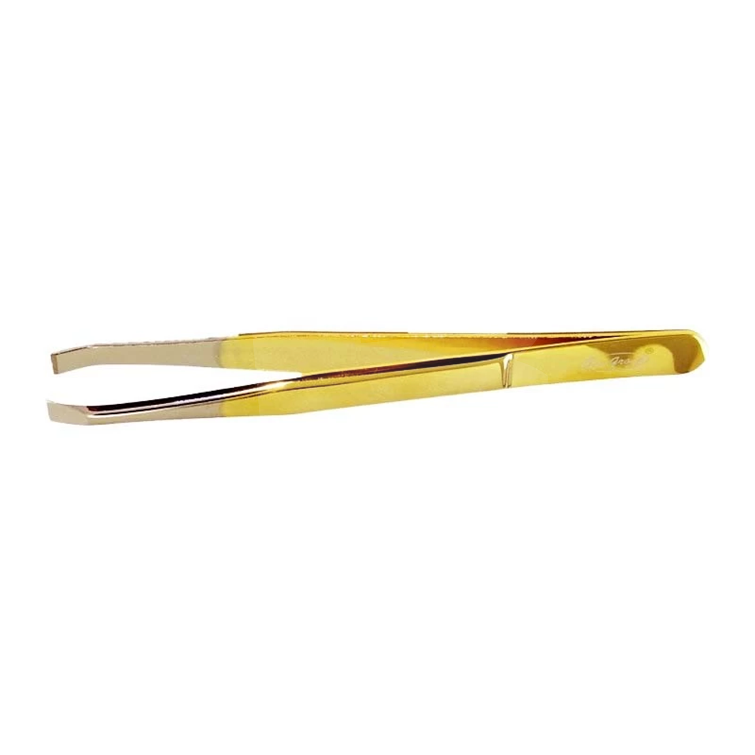 Finisajul auriu lucios, vizibil în imagine, oferă un aspect premium și elegant instrumentului, făcându-l potrivit pentru saloane moderne și truse de beauty în care estetica și profesionalismul sunt prioritare. Vârful plat, precis și perfect aliniat, permite extragerea firelor de păr scurte, subțiri sau rebele fără a le rupe, asigurând o acțiune delicată, dar fermă. Prin designul său clasic și funcțional, penseta aurie este ideală pentru conturarea sprâncenelor, epilarea facială de detaliu și proceduri cosmetice de finețe.