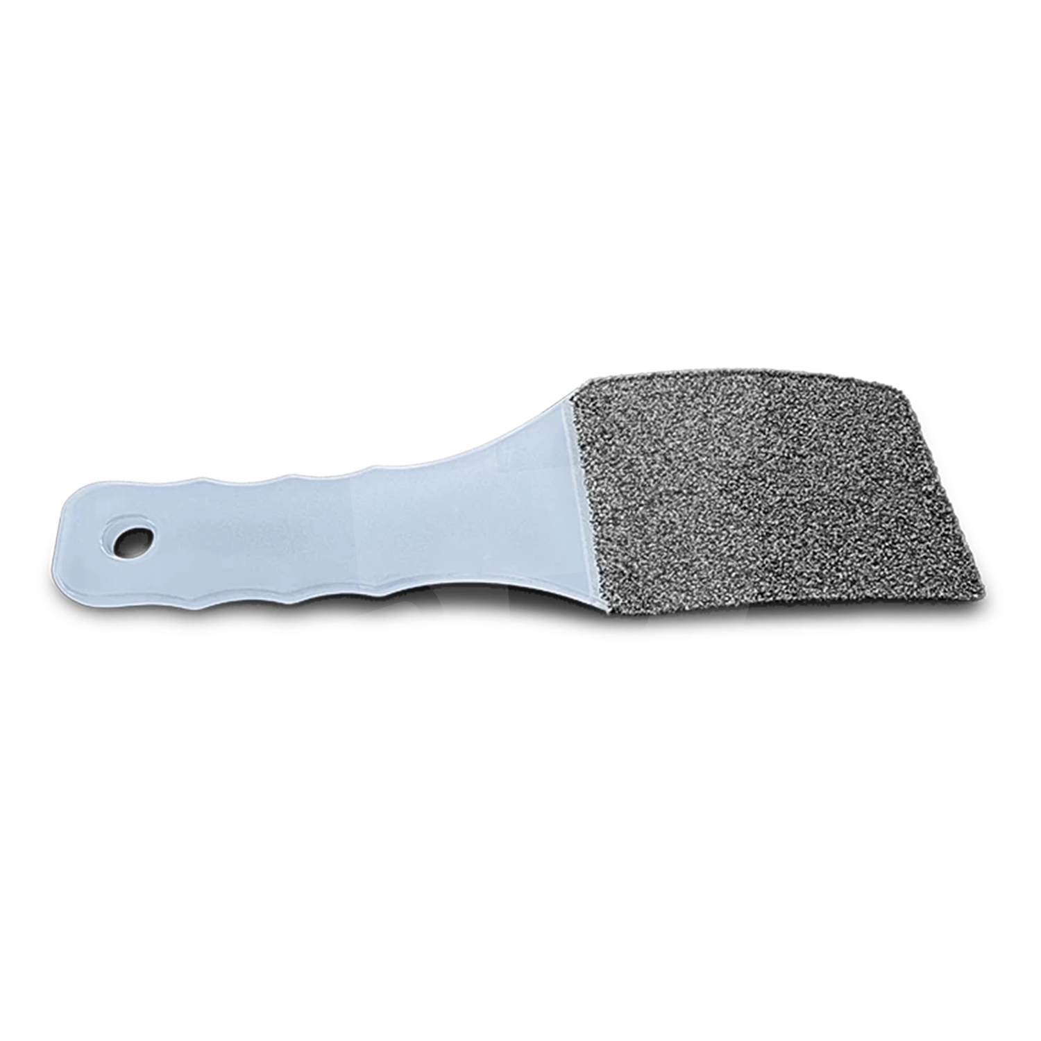 Mânerul alb-transparent este realizat dintr-un material durabil, ergonomic și antiderapant, cu o formă ondulată pentru o prindere fermă și confortabilă. Capătul rotunjit cu orificiu permite depozitarea ușoară pe suporturi sau panouri, facilitând organizarea spațiului de lucru. Tranziția dintre mâner și zona abrazivă este întărită, astfel încât pila oferă stabilitate și rezistență chiar și în utilizare profesională de lungă durată.
