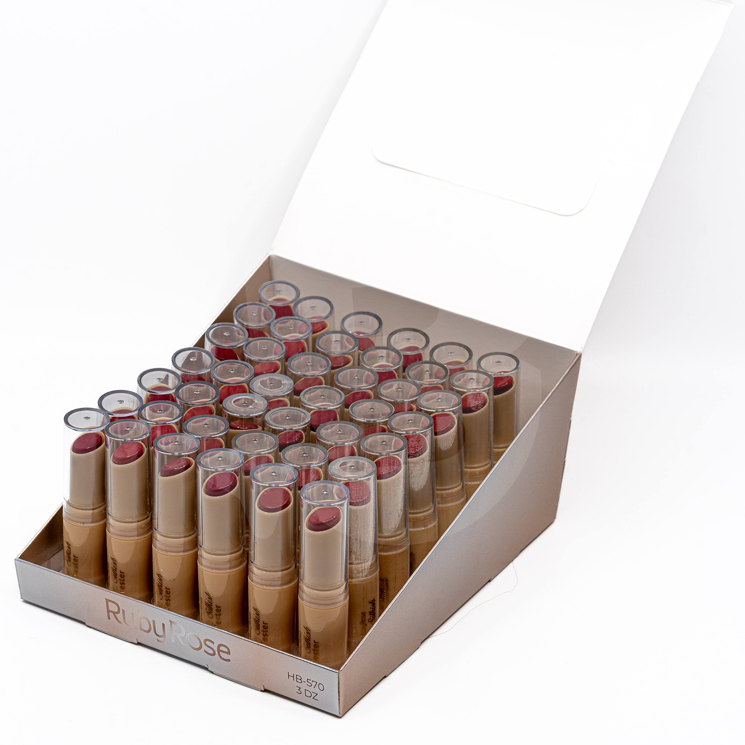 Ambalarea în display en-gros, cu un număr mare de bucăți, este gândită pentru vânzări rapide și eficiente. Fiecare ruj este protejat în tub transparent, modern, ușor de depozitat și expus pe raft. Acest tip de ambalare ajută comercianții să mențină un stand ordonat, vizibil și atrăgător pentru clienți. Setul este ideal pentru vânzare în magazine fizice, online, pentru saloane, distribuitori sau furnizori de cosmetice.