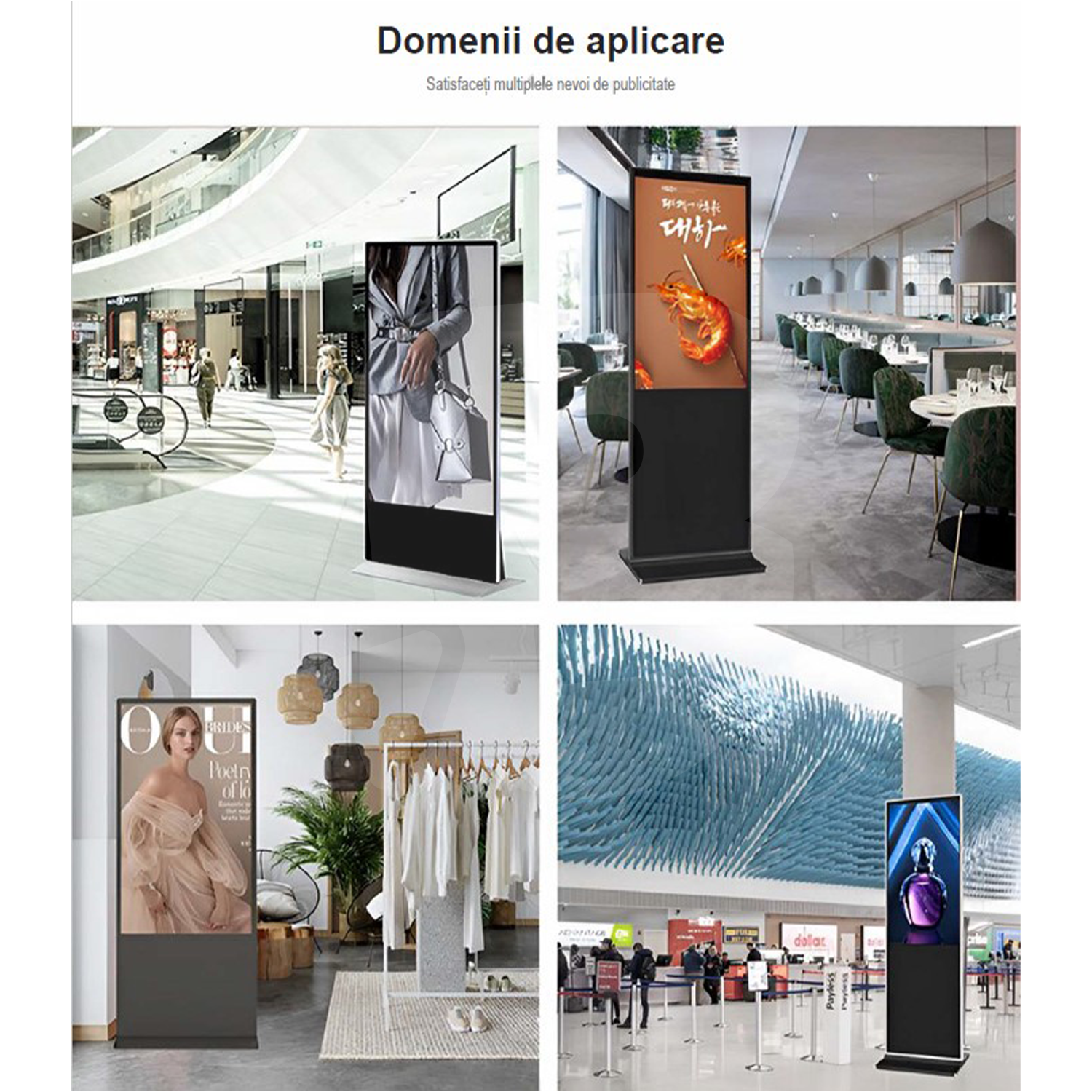 Aplicații: magazine, mall-uri, restaurante, hoteluri, aeroporturi, recepții, spații publice