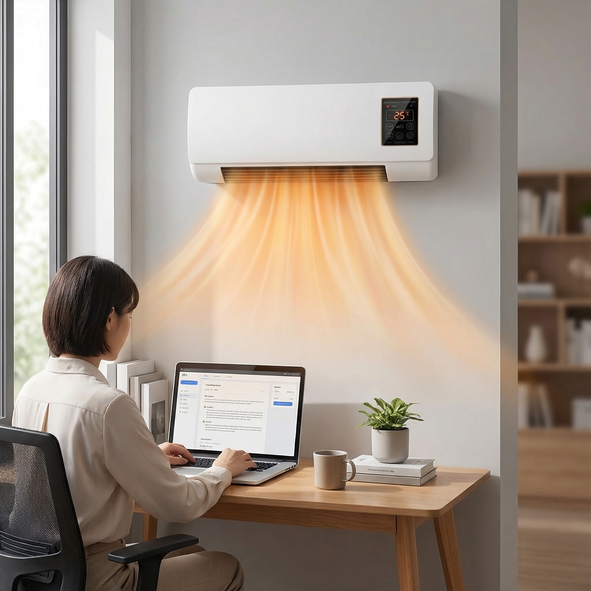 Confortul suprem vine din controlul la distanță. Cu telecomanda inclusă, poți ajusta temperatura sau schimba modul de funcționare de la o distanță de până la 10 metri. Designul modern și subțire se integrează perfect în orice decor, fie că o așezi în dormitor, living sau birou. Alege inteligența și eficiența pentru casa ta chiar astăzi!