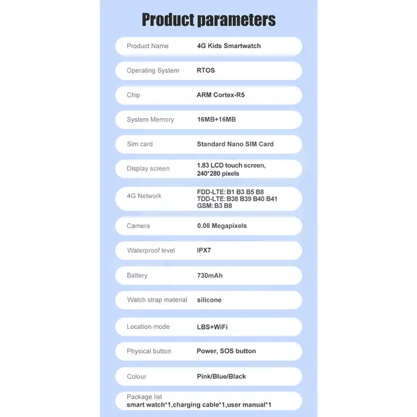 Cu un design atractiv și disponibil în trei culori populare (albastru, roz și negru), modelul D53 se adresează copiilor din toate categoriile de vârstă. Ecranul generos și interfața intuitivă fac ceasul ușor de utilizat, iar camera frontală permite apeluri video clare, oferind părinților siguranța de a-și vedea copilul în orice moment al zilei.