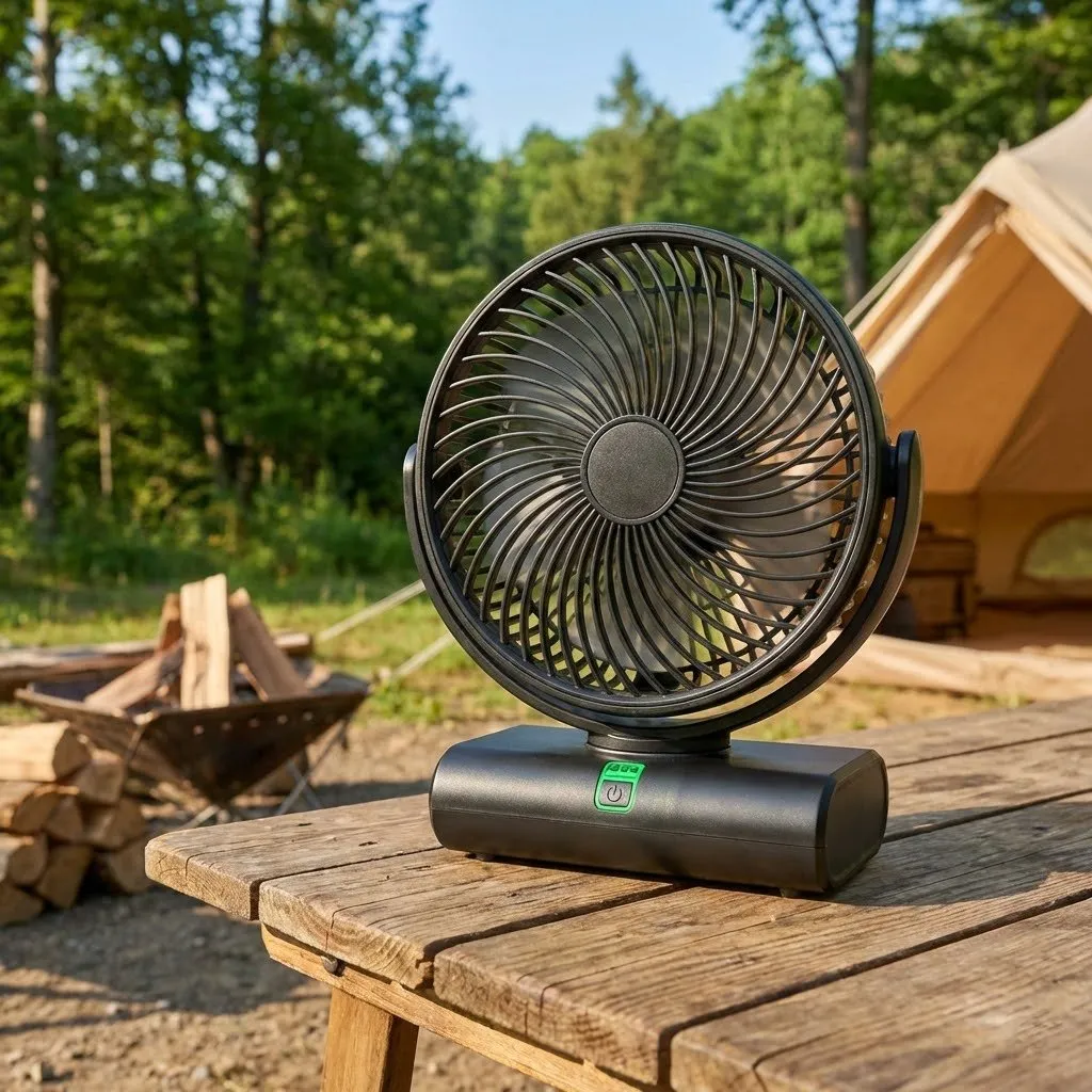 Inovația principală constă în funcționarea pe bază de acumulator de 1500 mAh. Uită de prelungitoarele întinse prin curte sau de căutarea unei prize în timpul unui picnic. Această autonomie îți permite să plasezi ventilatorul exact acolo unde ai nevoie – pe masa din grădină, lângă șezlongul de la piscină sau chiar în cort, oferindu-ți ore întregi de răcoare neîntreruptă.