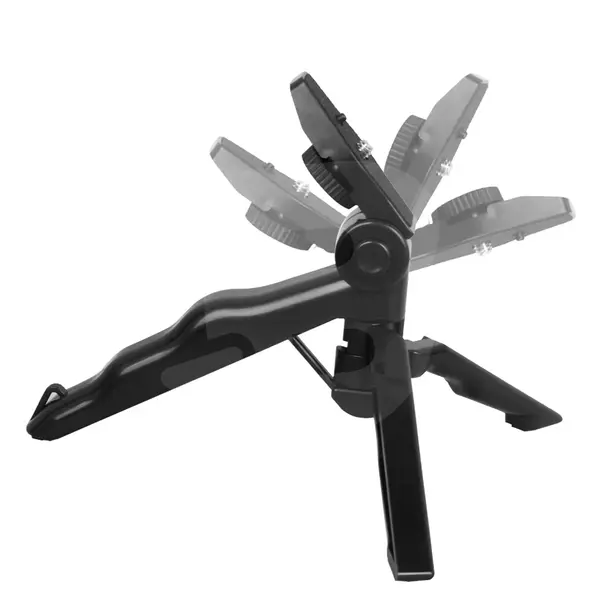 Componenta centrală a kit-ului este trepiedul compact și stabil, realizat din material ABS durabil. Acesta oferă o bună stabilitate pe diverse suprafețe și permite filmarea din mai multe unghiuri. Dimensiunile reduse – aproximativ 18 cm lățime și 9 cm înălțime – îl fac ușor de transportat și depozitat, fiind ideal pentru utilizare atât acasă, cât și în deplasare.