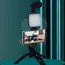 Kit-ul include o lumină de umplere LED reglabilă, cu dimensiunea de aproximativ 6,5 x 8 cm, concepută pentru a ilumina fața sau cadrul de filmare în condiții de lumină scăzută. Intensitatea luminii este reglabilă, permițând obținerea unui efect vizual echilibrat și natural. Lumina este alimentată de o baterie internă reîncărcabilă de 75 mAh, eliminând necesitatea bateriilor externe.