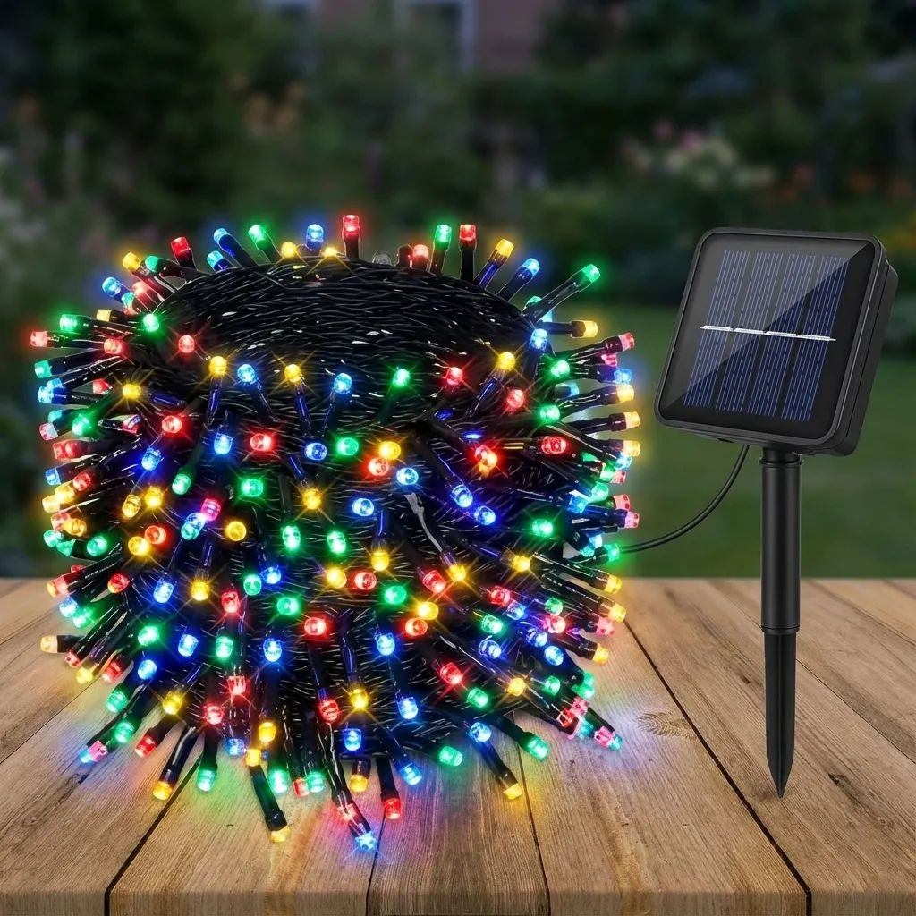 Decorarea spațiilor exterioare mari poate fi o provocare tehnică și financiară, implicând adesea zeci de metri de cabluri inestetice și un consum ridicat de electricitate. Instalația LED Solară de 30 de metri redefineste iluminatul decorativ, oferindu-ți o lungime colosală și o densitate de 300 de puncte luminoase, toate alimentate exclusiv de energia gratuită a soarelui. Indiferent dacă vrei să îmbraci un gard întreg, să conturezi coroana unui copac sau să creezi un fundal multicolor pe terasă, acest sistem inteligent aduce strălucirea sărbătorilor direct în inima naturii.