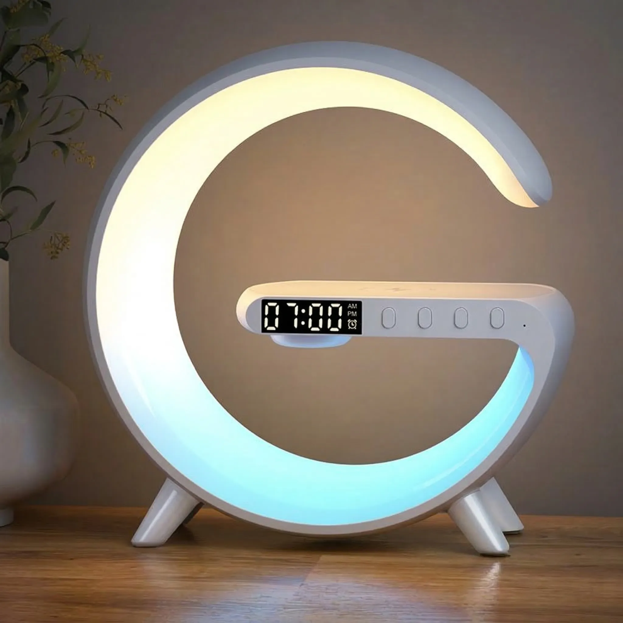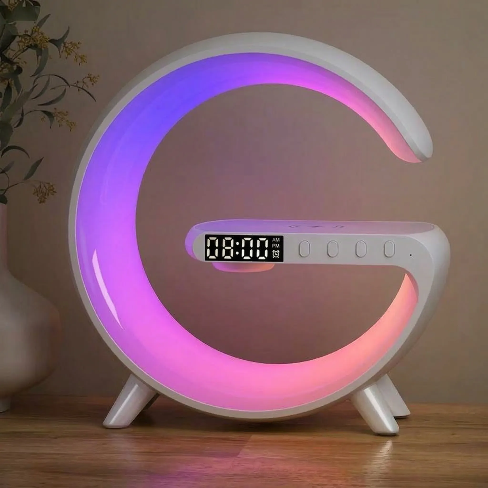 Acest dispozitiv versatil este mai mult decât o simplă lampă; este un centru multimedia complet, conceput pentru a-ți simplifica viața și pentru a aduce un plus de stil locuinței tale. G63 combină funcționalitatea unei lămpi multicolore, a unui ceas cu alarmă dublă, a unui difuzor Bluetooth de înaltă calitate și a unui încărcător rapid wireless, oferindu-ți tot ce ai nevoie pentru confort, relaxare și divertisment într-un design compact și elegant.