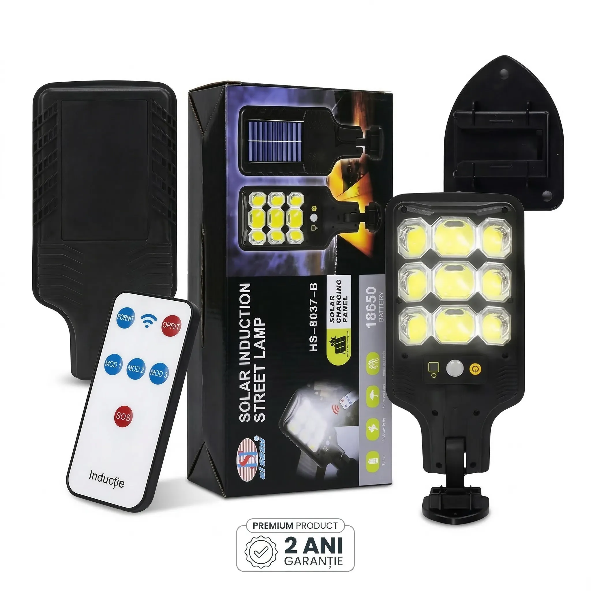 Concepută special pentru a oferi performanță în orice condiții meteo, lampa HS-8037B reprezintă echilibrul perfect între tehnologia modernă COB și sustenabilitatea energiei solare. Este soluția ideală pentru grădini, alei, garaje sau terase, eliminând necesitatea cablurilor inestetice și a conexiunilor la rețeaua electrică.