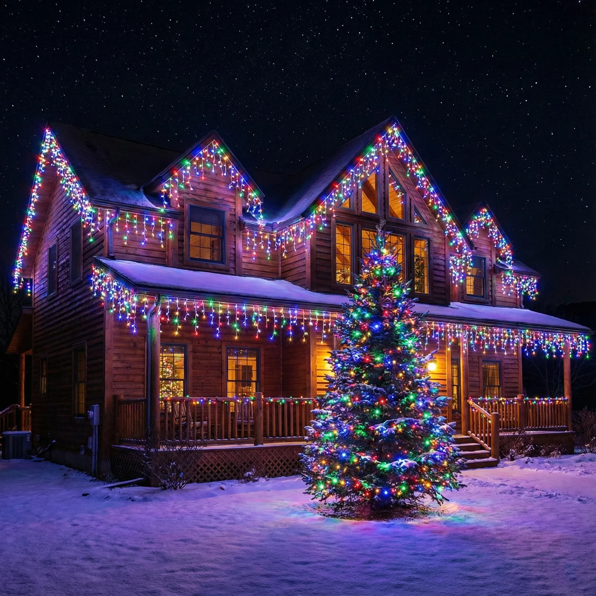 - 300 LED-uri Multicolor: Luminozitate uniformă și culori vibrante de sărbătoare.