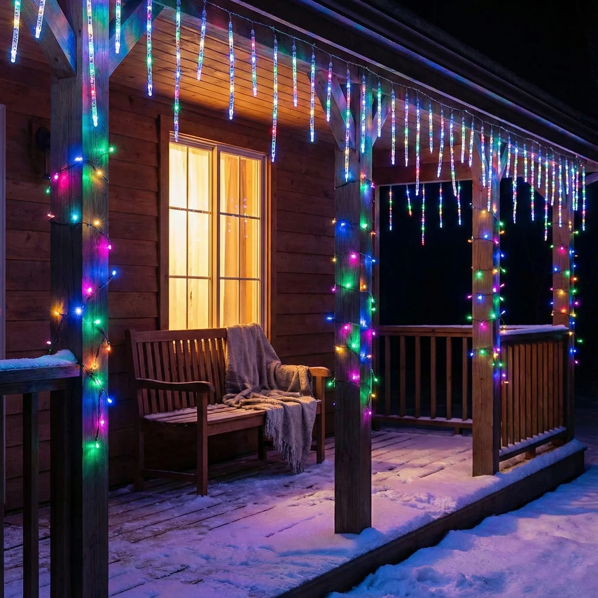 Franjurii inegali simulează căderea naturală a turturilor de gheață, oferind profunzime decorului tău. Cele 300 de LED-uri multicolore sunt distribuite strategic pentru a asigura o luminozitate intensă, transformând orice perete banal într-o cascadă de lumină magică.