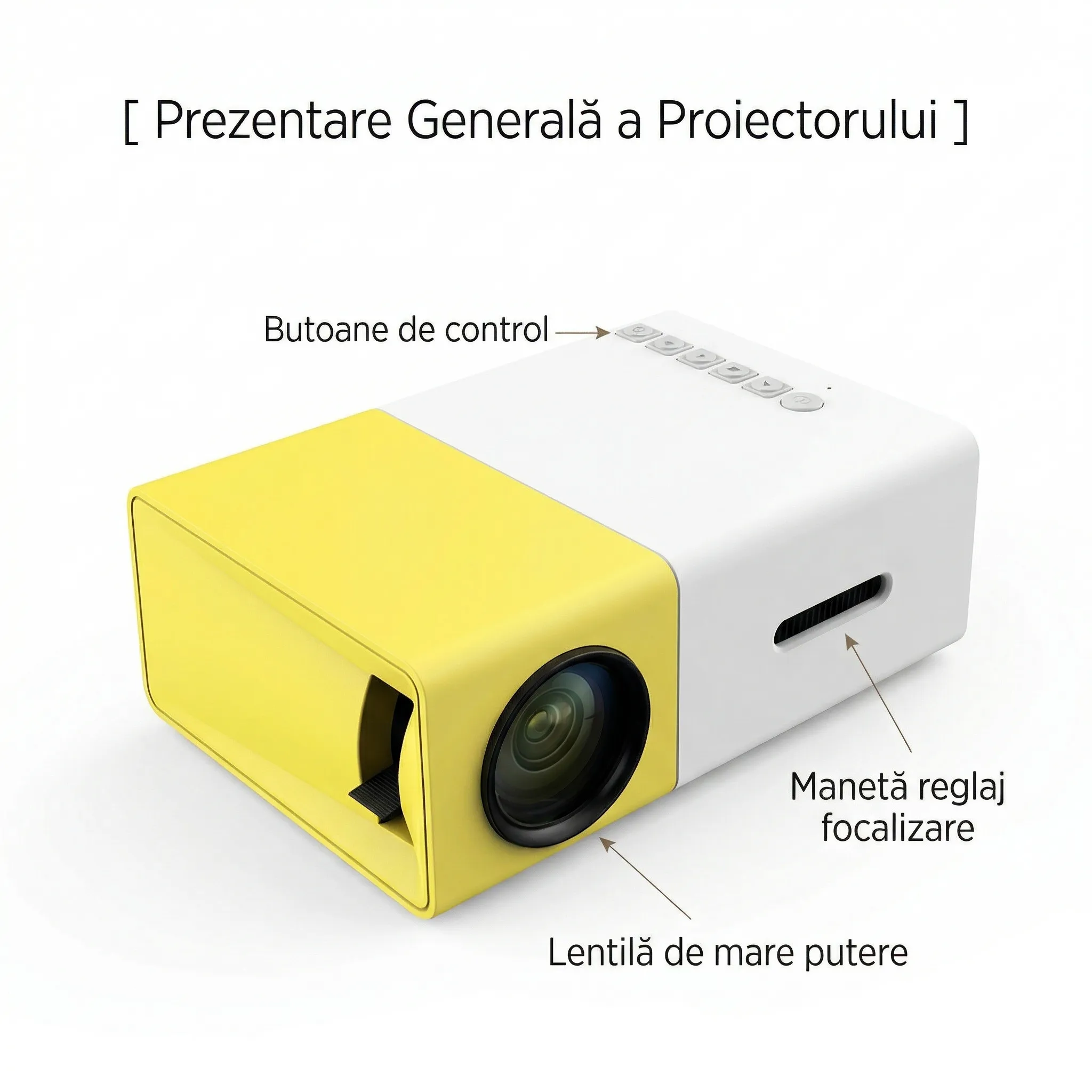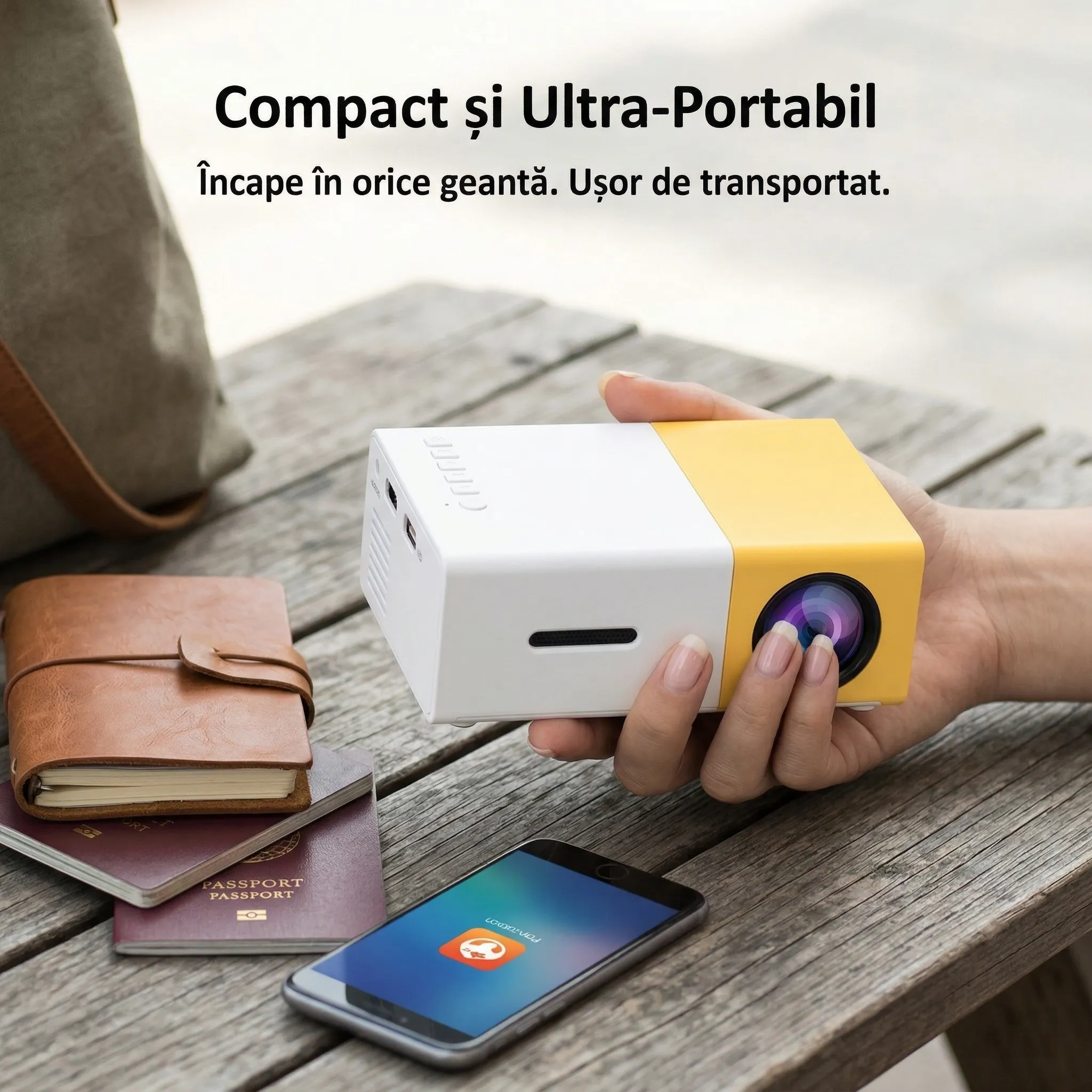 - Design Ultra-Compact: Cântărind mai puțin de jumătate de kilogram (0,484 kg), acest proiector este definiția portabilității. Încape cu ușurință în orice bagaj, permițându-ți să iei distracția cu tine în vacanțe, camping sau la prieteni.