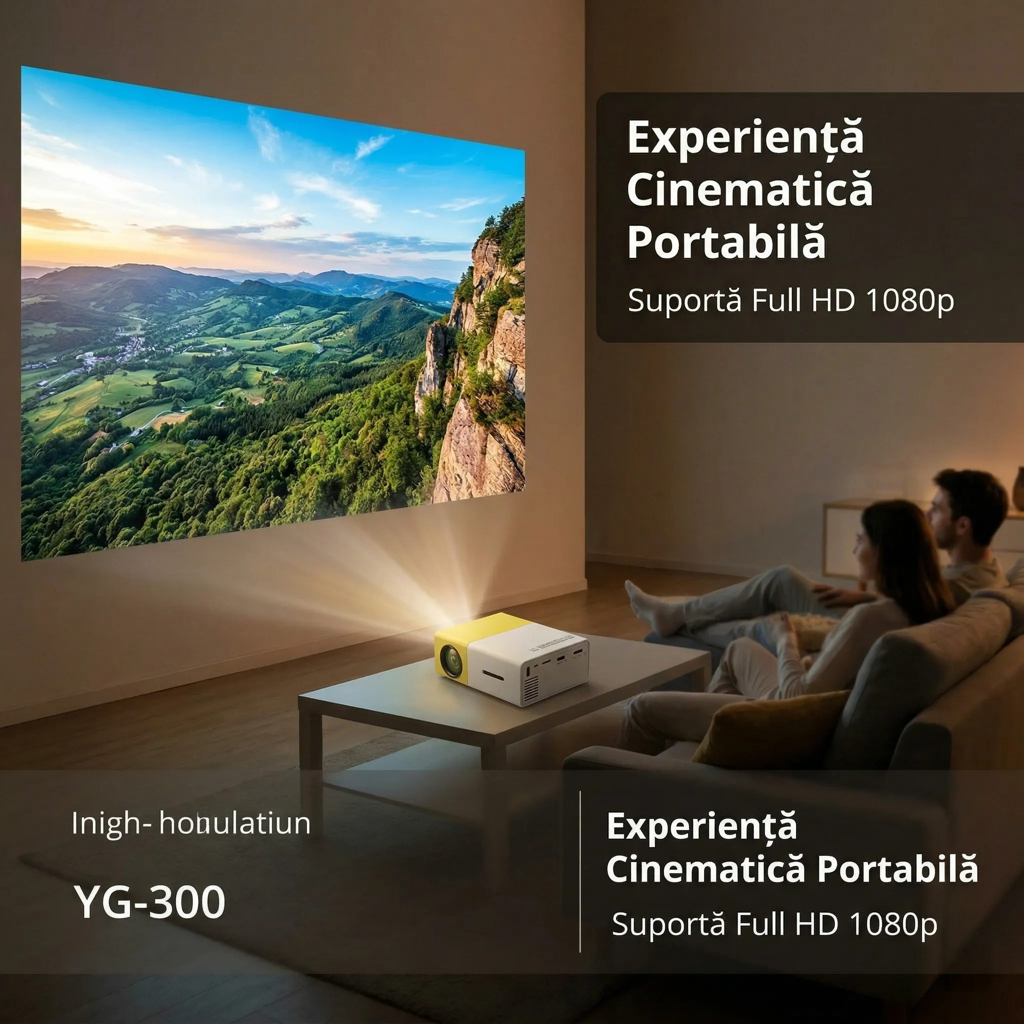 Bucură-te de experiența cinematografică oriunde cu Proiectorul Portabil LED YG-300. Compact, ușor și surprinzător de puternic, acest proiector este conceput pentru a aduce divertismentul de calitate în viața ta, fie că ești acasă, în călătorie sau în aer liber. Suportul pentru rezoluție Full HD 1920x1080 asigură imagini clare și culori vii, transformând orice perete alb într-un ecran de proiecție spectaculos.