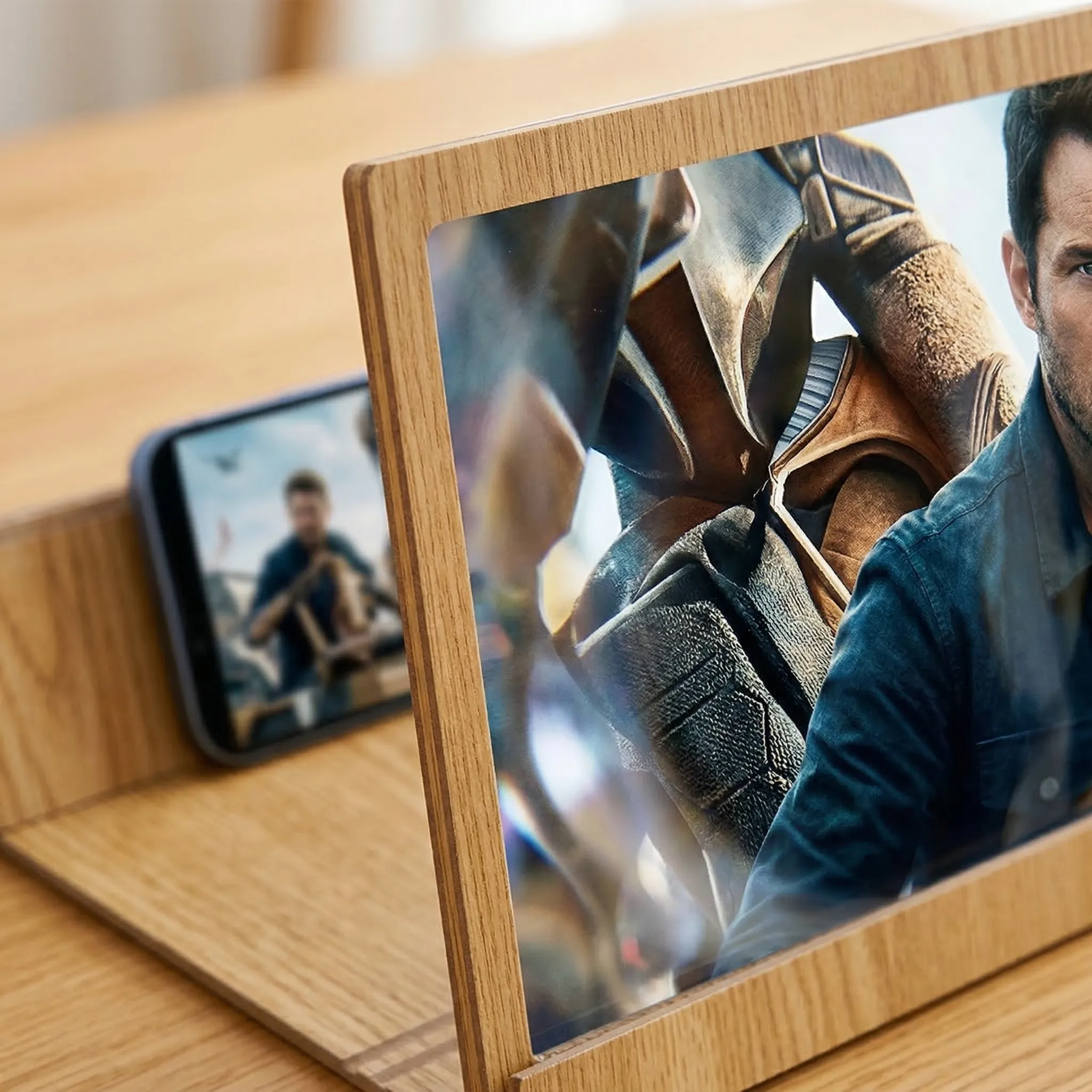 Bucură-te de o experiență cinematografică impresionantă direct de pe telefonul tău cu suportul EDAR cu amplificator de imagine 3D – vizionare clară, mare și protejată!