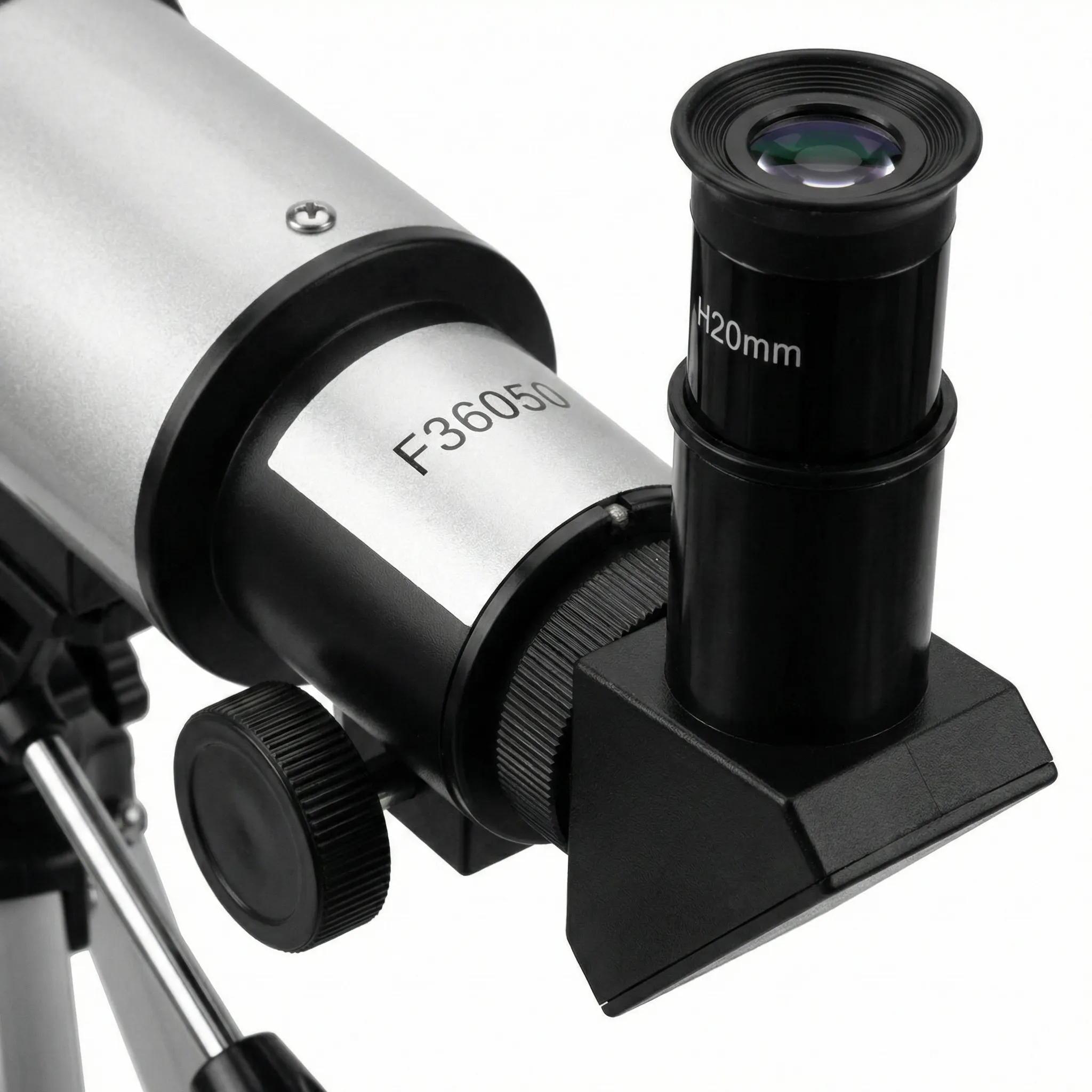 - Observații Detaliate și Clare: Obiectivul de 50 mm și ocularele interschimbabile (H20mm și H6mm) îți permit să explorezi craterele lunare, inelele lui Saturn, benzile lui Jupiter și fazele planetei Venus cu o precizie impresionantă.