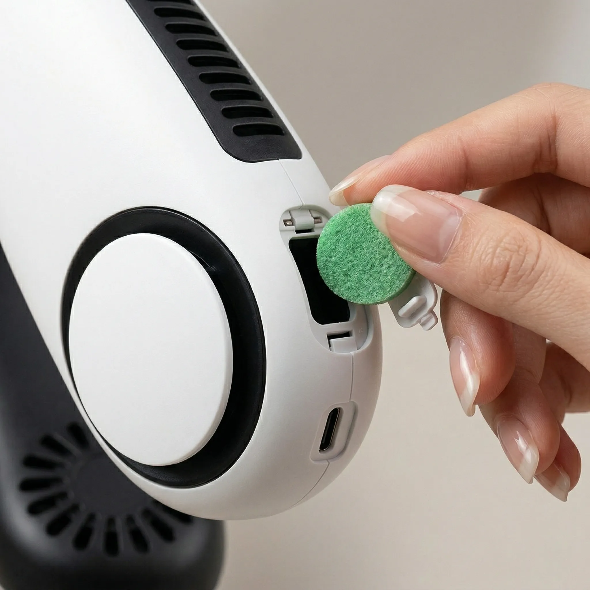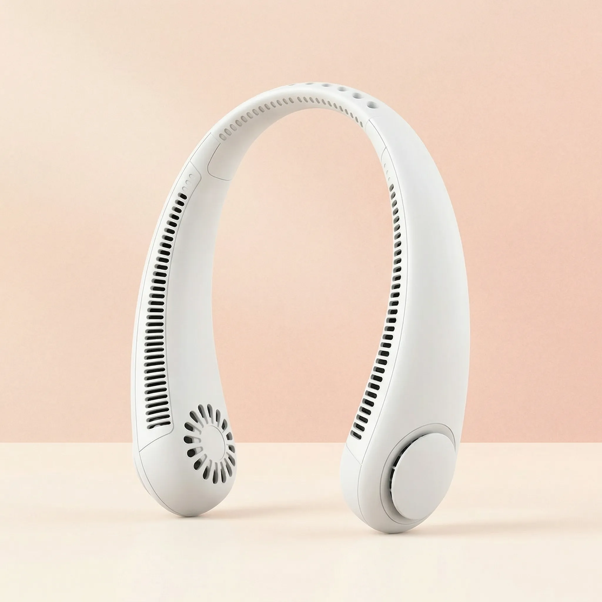 - Design Ergonomic și Ușor: Fabricat din polipropilenă premium, ventilatorul este extrem de ușor, prevenind oboseala gâtului chiar și după ore întregi de purtare. Designul alb, minimalist, se asortează cu orice ținută, fiind atât funcțional, cât și estetic.