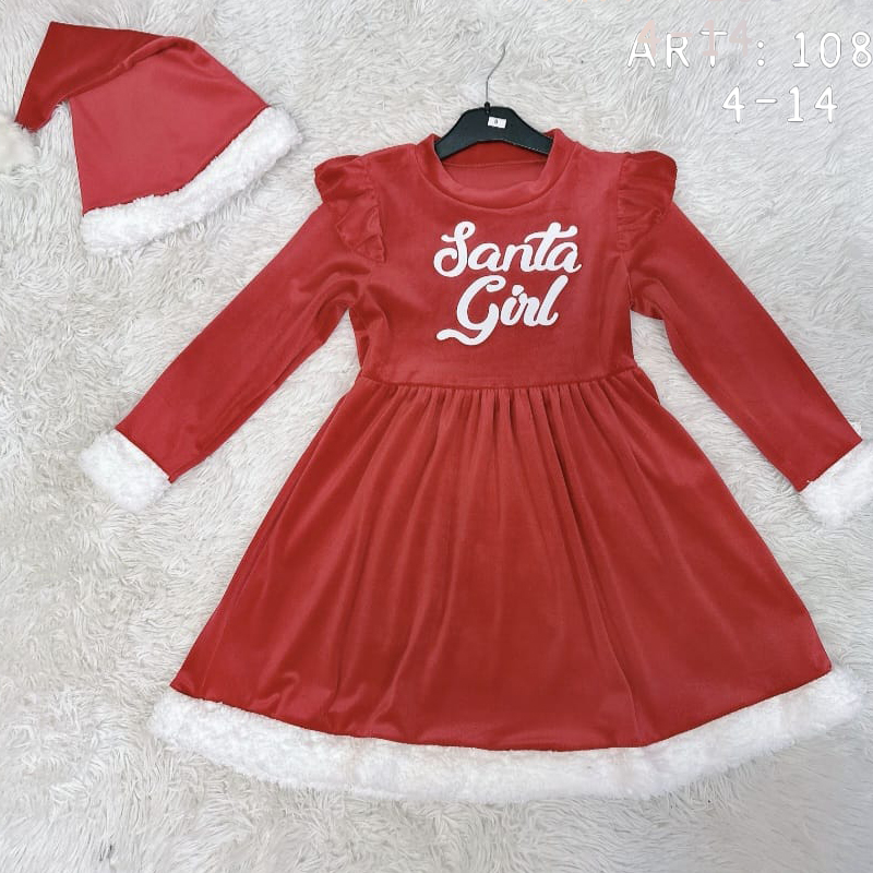 Rochia Santa Girl pentru fete este alegerea perfectă pentru perioada sărbătorilor de iarnă! Confecționată din material catifelat, moale și confortabil, rochia are un design inspirat din ținutele clasice de Crăciun, fiind decorată cu margini pufoase albe la mâneci și poale, oferind un aspect deosebit și festiv.