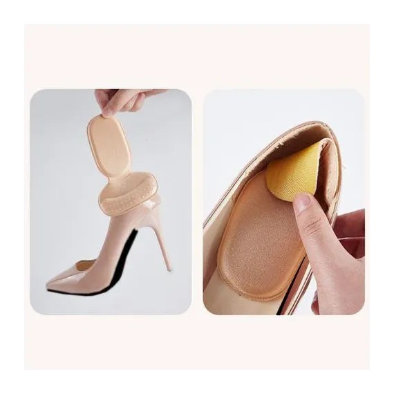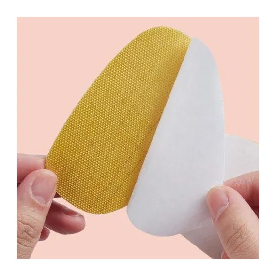 Fixarea se face prin sistem autoadeziv, vizibil în imaginile detaliate ale produsului. Adezivul este protejat de o folie detașabilă și permite aplicarea rapidă pe interiorul pantofului, în zona din spate. După aplicare, pernele rămân stabile în timpul mersului, prevenind deplasarea sau rularea în interiorul pantofului. Acest aspect este important în special pentru încălțămintea cu toc sau cu spate rigid.