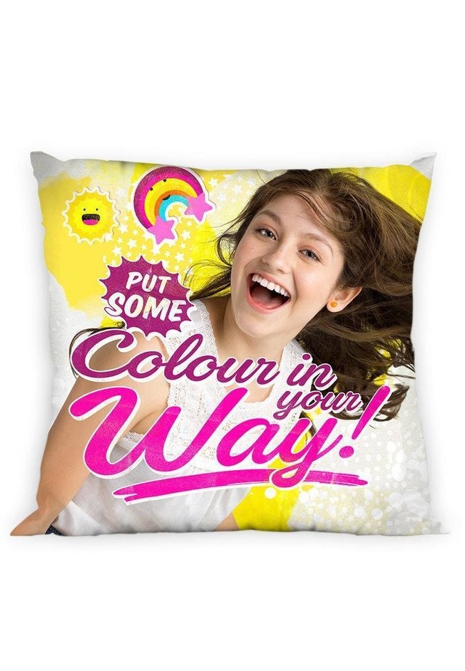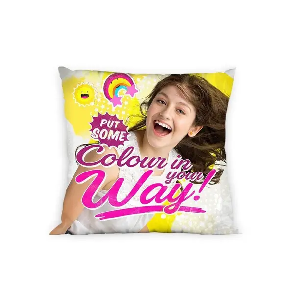 Aduceți energia și optimismul celebrului personaj în camera copilului dumneavoastră cu această față de pernă Soy Luna. Având dimensiunea de 40 x 40 cm, acest accesoriu este ideal pentru a completa decorul dormitorului, fiind o piesă de rezistență pentru micii fani ai serialului. Imprimeul vibrant, de înaltă calitate, redă fidel elementele iconice ale universului Soy Luna, transformând orice pernă obișnuită într-un element decorativ plin de stil și culoare.