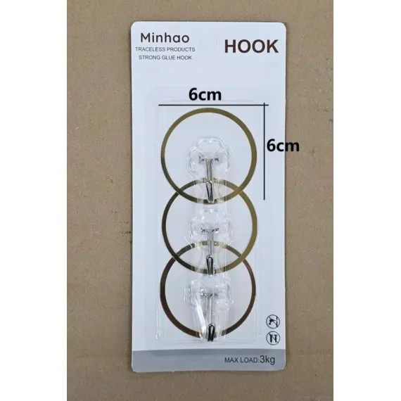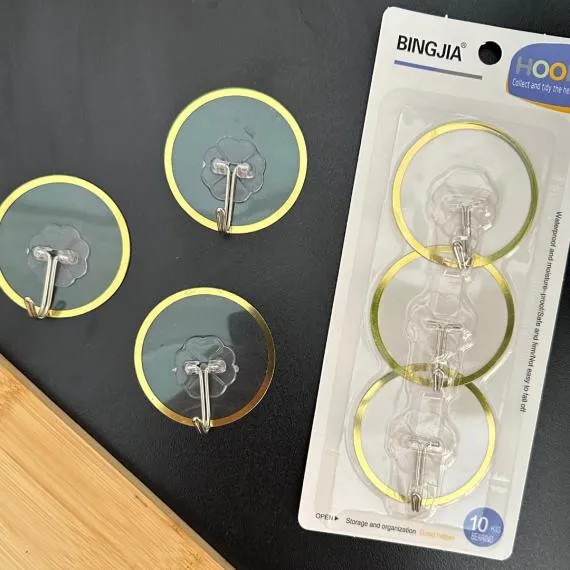 Cuierele sunt realizate din material transparent rezistent, cu element de agățare metalic, ceea ce le conferă un aspect discret și elegant. Designul circular cu margine accentuată asigură o fixare stabilă și o distribuție uniformă a greutății. Conform informațiilor vizibile pe ambalaj, fiecare cui suportă o încărcare de până la 3 kg, ceea ce le face potrivite pentru o gamă largă de obiecte uzuale.